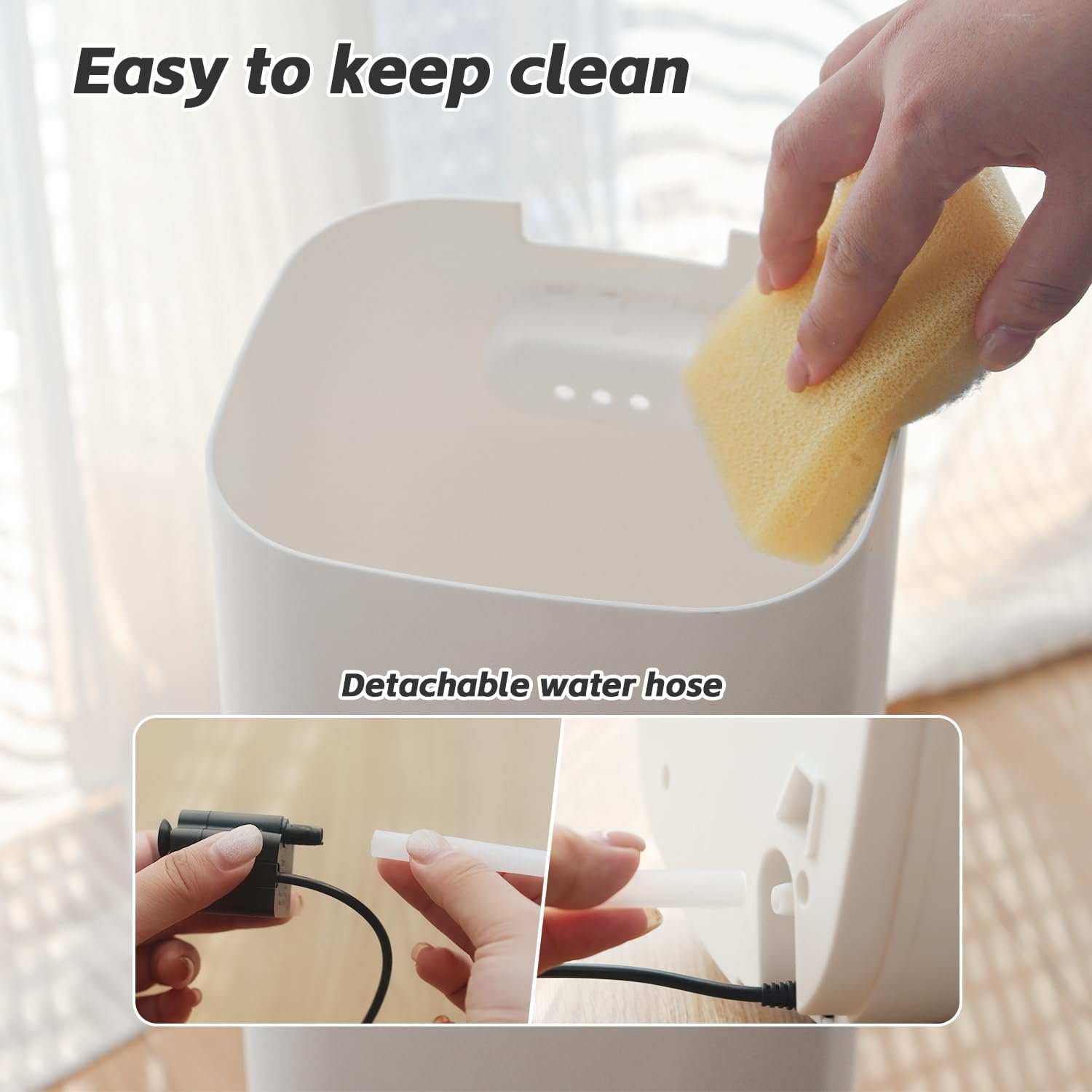 🐳【Large Capacity & No Leakage & Top Fill Design】Featuring a removable 2.3-gallon tank, this humidifier large room prevents leaks and allows for easy refilling. With a high moisture output of 300mL/h, it effectively humidifies areas up to 1000 sq.ft, offering lasting relief from air and skin dryness without frequent refills. Its slim, mid-century modern design with feet at the bottom ensures it fits seamlessly into any room without occupying too much space.