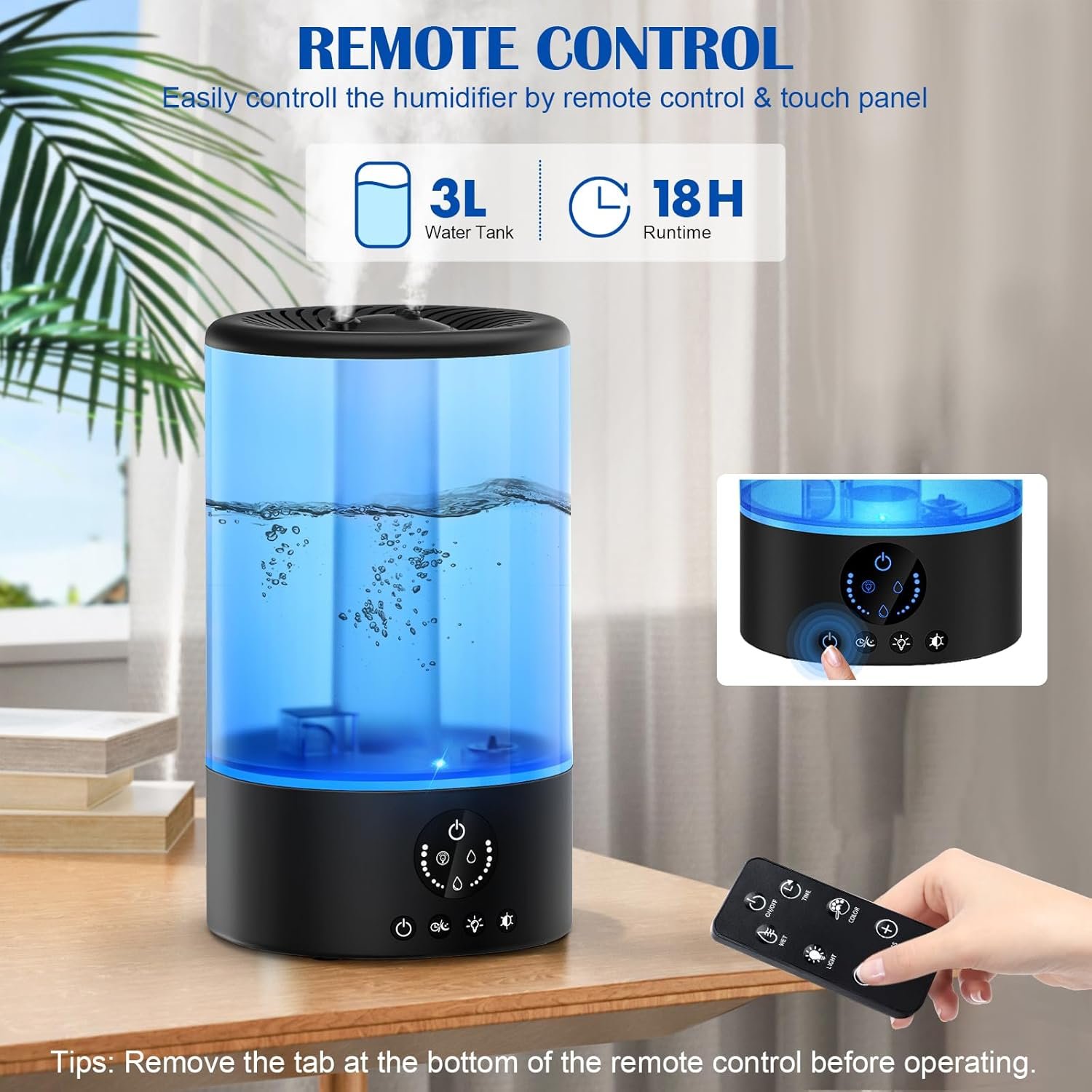 ✅【Remote Control & Auto Shut Off】:Easily change the humidifier settings in your environment with the convenient remote control.This cool mist humidifier has 3 levels of mist output that you can fully customize according to your preferences. When the lack of water, the water shortage indicator will flash to remind, shut down the humidification function to prevent dry burning damage to the product.