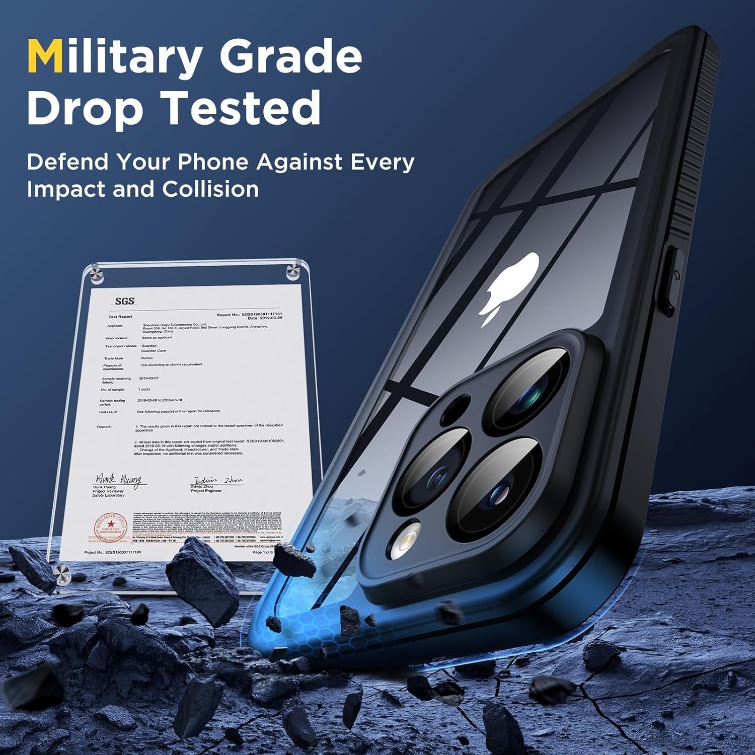 【Military-Grade Full-Body Shockproof】Humixx for iPhone 15 Pro Max case meets MIL-STD-810G 516.6, surviving 15-ft drops. The PC material and shock-absorbing TPU frame offer unmatched protection, with raised edges to safeguard the screen and camera.