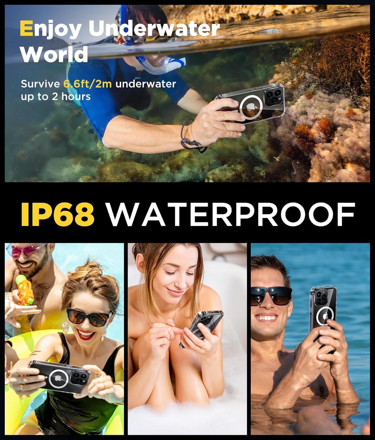 【IP68 Waterproof Lifeproof】 With IP68 certification, this case withstands submersion in 6.6ft of water for over 2 hours, perfect for swimming, snorkeling, and daily water exposure. It keeps your device dry and secure through all of life’s splashes.