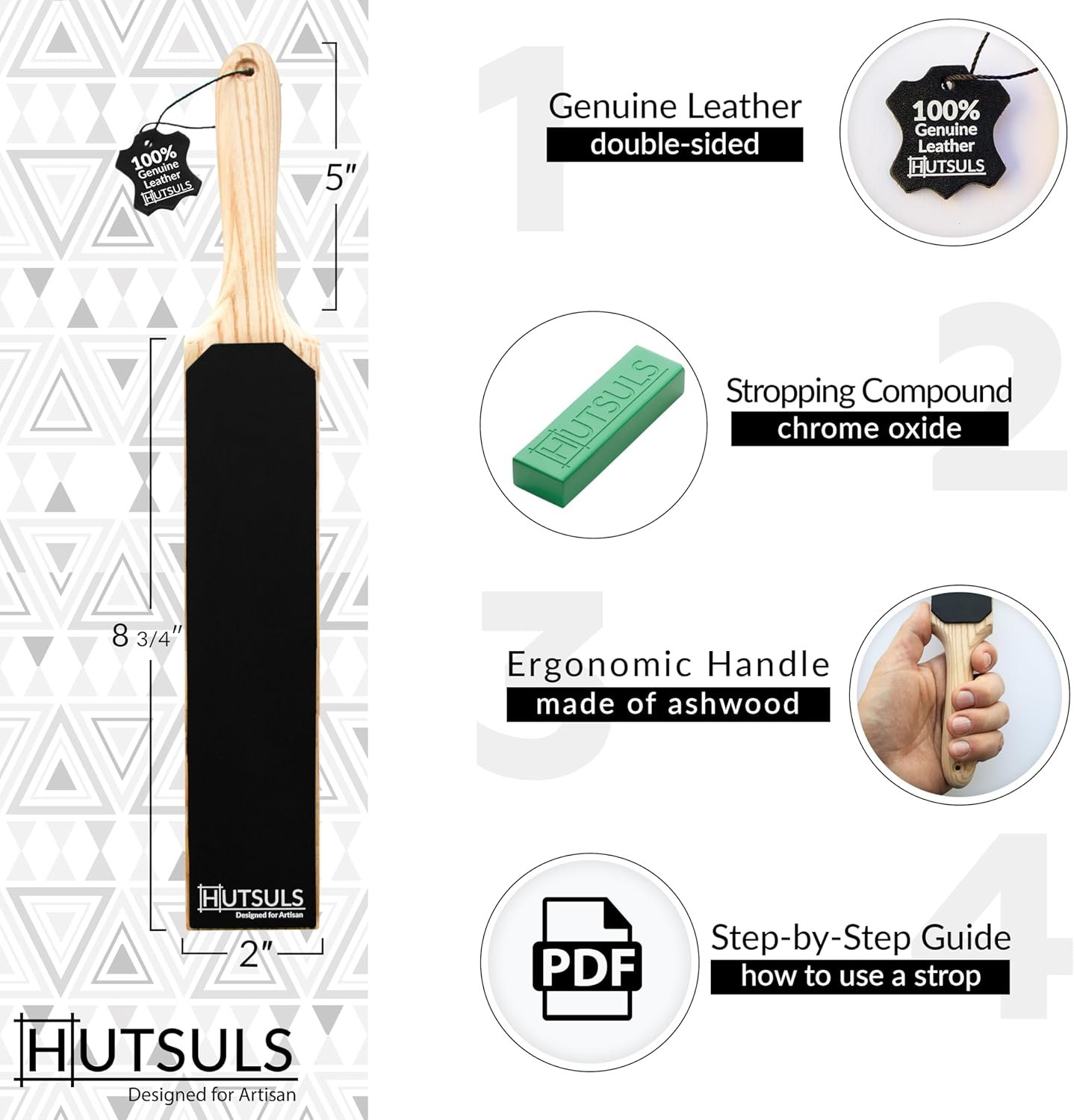 Effortless Use: Using this leather sharpening strop for knife is a breeze. This paddle strop 2 sided is for professional and beginner use, and includes a step-by-step knife sharpening leather strop guide