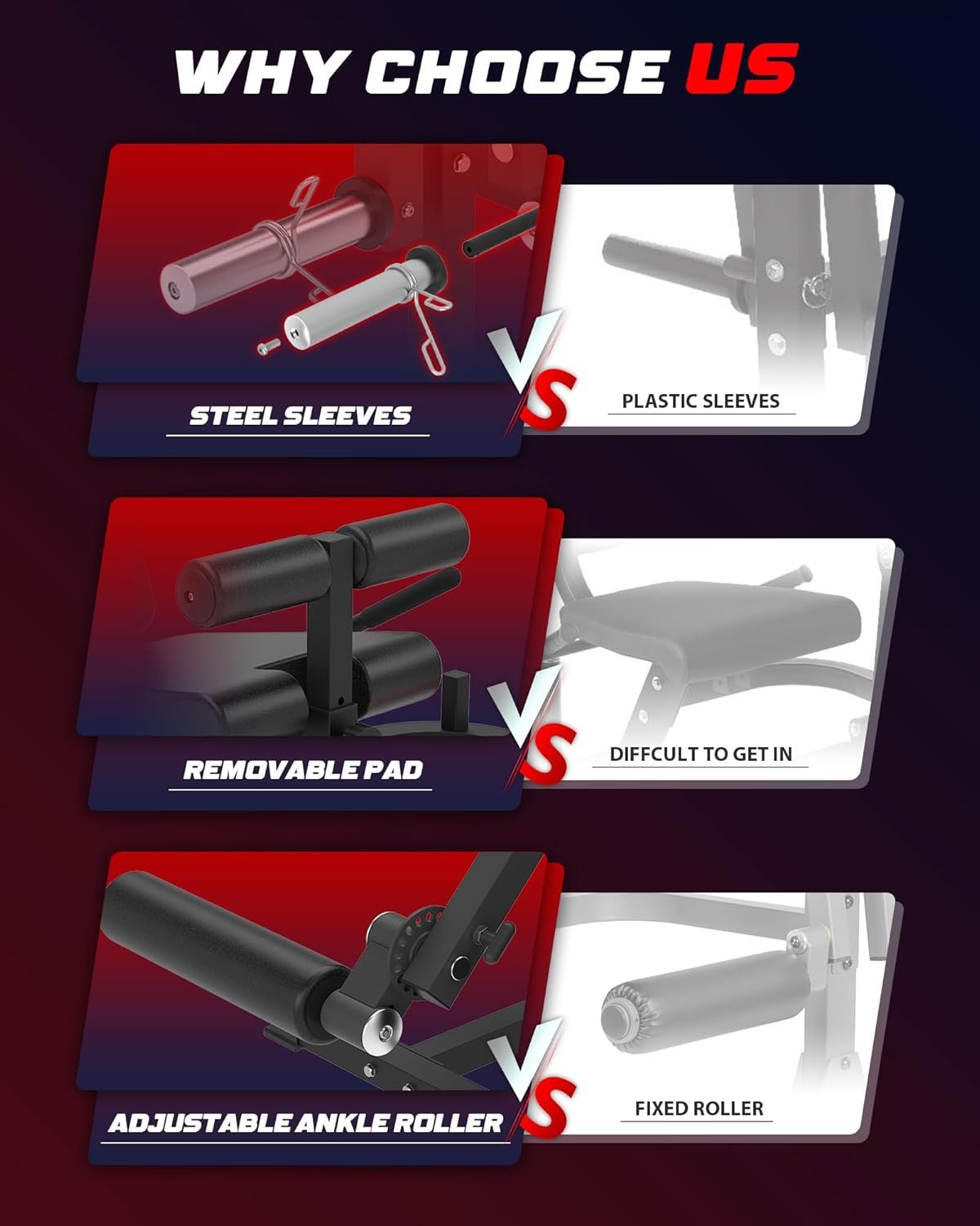 UPPER BODY AND CORE STRENGTH EXERCISES: By adjusting the seat and backrest positions on the leg curl machine, it allows for a greater variety of exercises to be performed. Supine Dumbbell Bicep Curls, Tricep Dips Sit-ups and so on. It caters to the needs of professional bodybuilders seeking diverse home workout options.