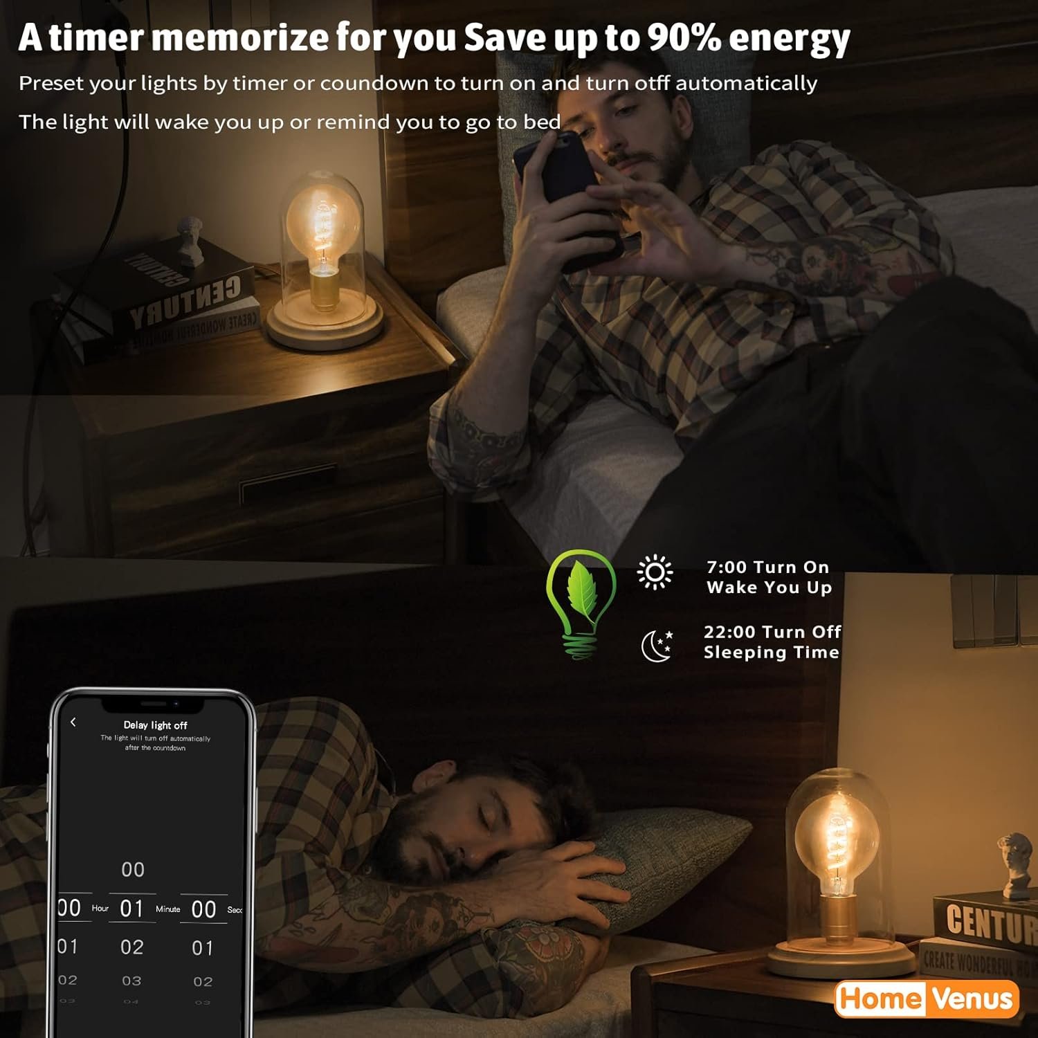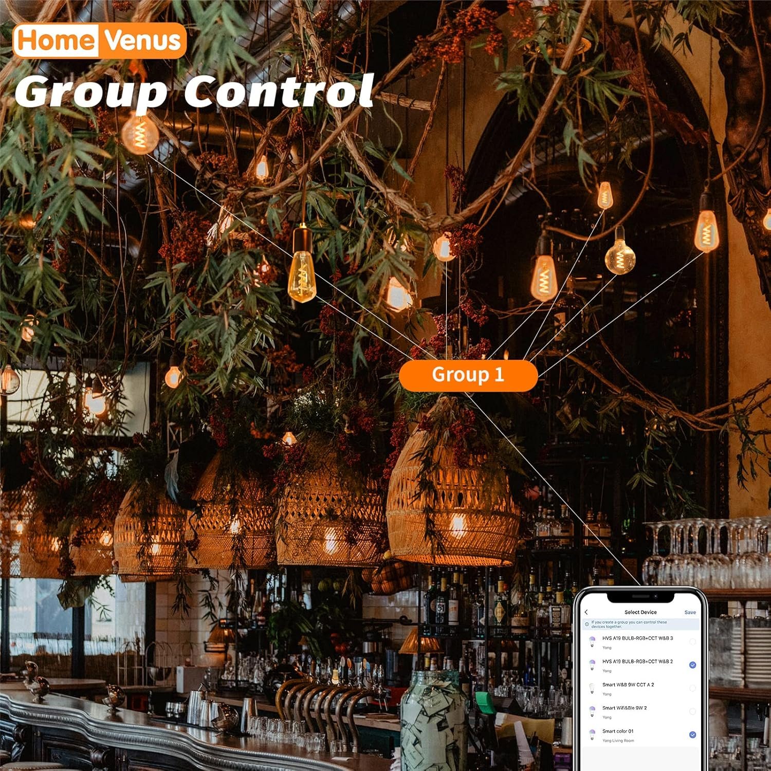 [ High Support to Automatic Your Home] Automatic function allow you to custom your life scene, and control your light based on the changes of time and weather. You can set the front porch light to turn on after sunset, and a warm light will be always waiting for you to back home when finish the day! Schedule setting, timer, countdown function is easily to set to fulfill your smart life. Try HVS smart edison bulbs and to explore more possibility with your brainstorms!