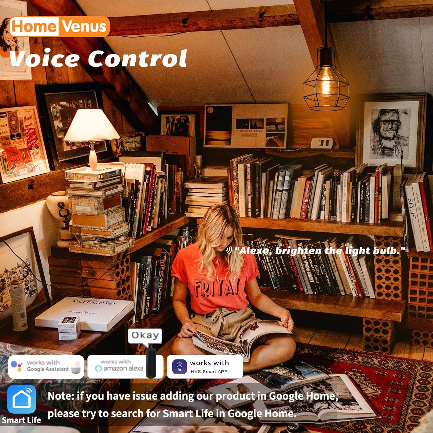 [ Work with Alexa Google Assistant ] HVS spiral filament smart bulbs that work with Alexa voice control, Google Assistant. Download the HVS APP(support both Android and IOS system) and easily connect the smart light bulbs to 2.4GHz WiFi (Bluetooth only for assistant link), then you can control it via phone when you are busy or just give simple command to Alexa to free your hand! Sharing connection of HVS APP will allow your friends and family control together and conveniently.