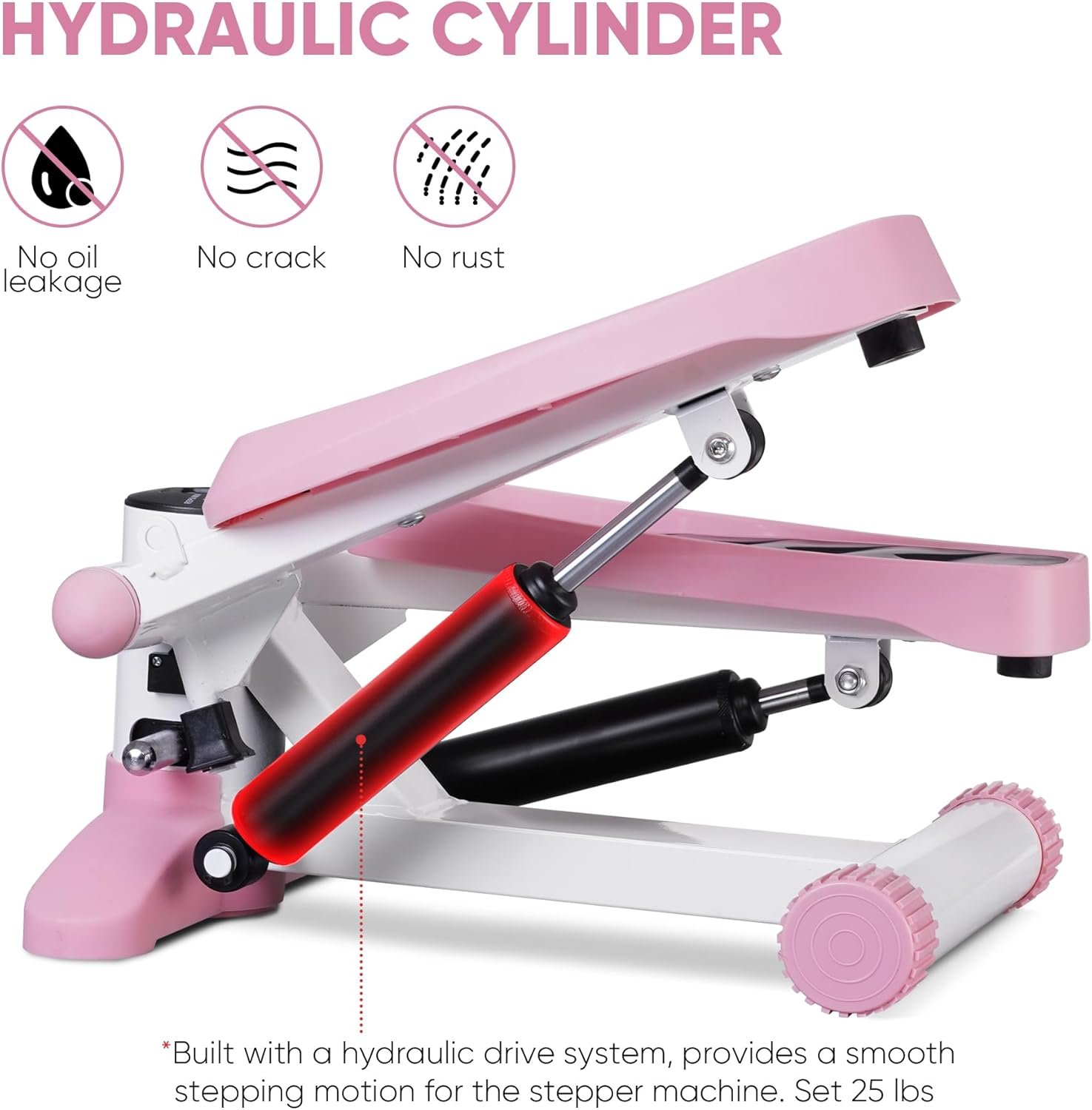 Hydraulic Drive System- Our stair stepper comes with a smoother & quieter Hydraulic System which makes you enjoy the stepping exercise in a quite environment and do not need to distrub others