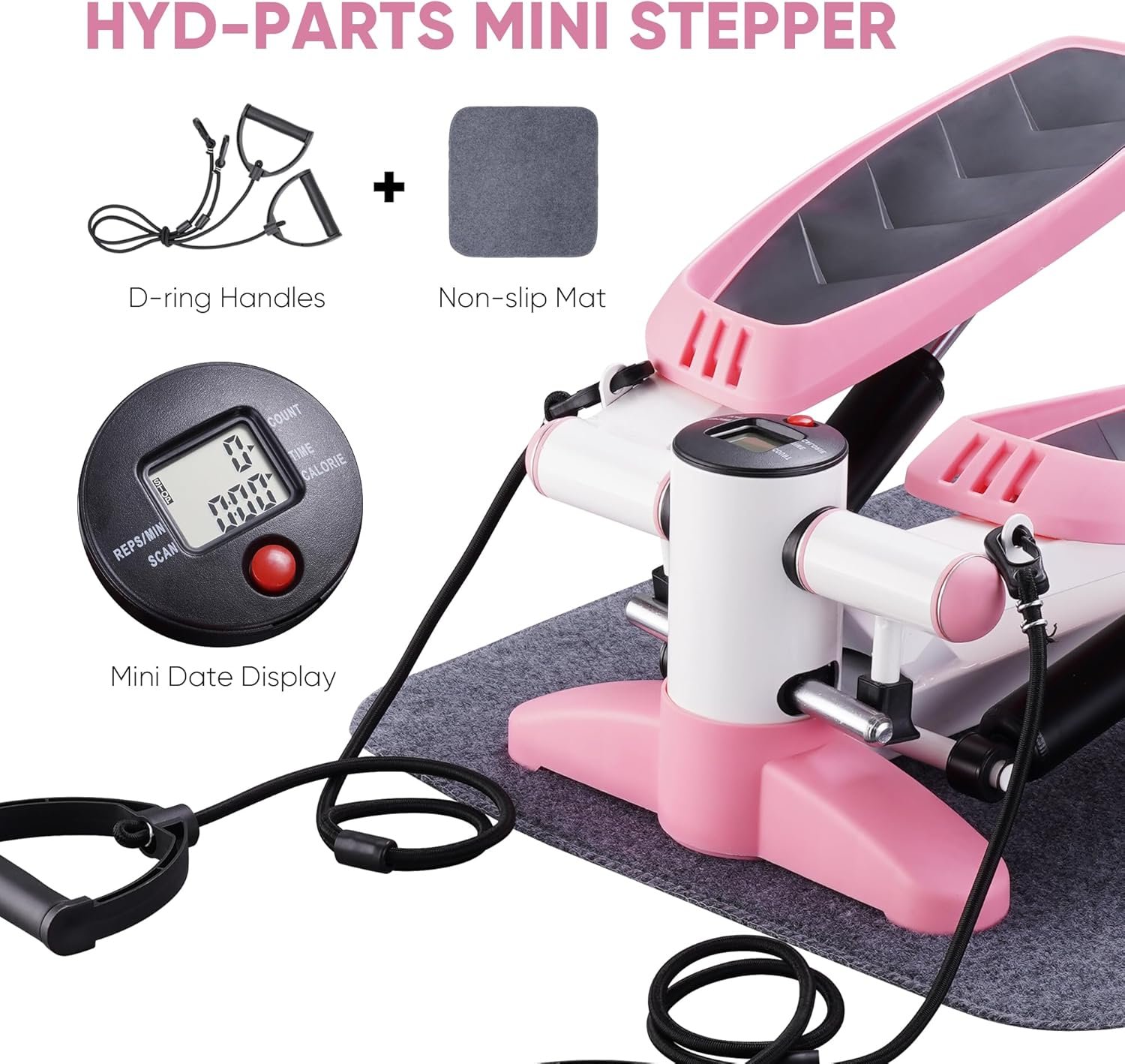 Visuable Exercise Machine- Built in LED digital monitor, our mini stepper helps you to track data of COUNT, TIME, CAL, SCAN, and REPS/MIN, letting you know the effect of your effort