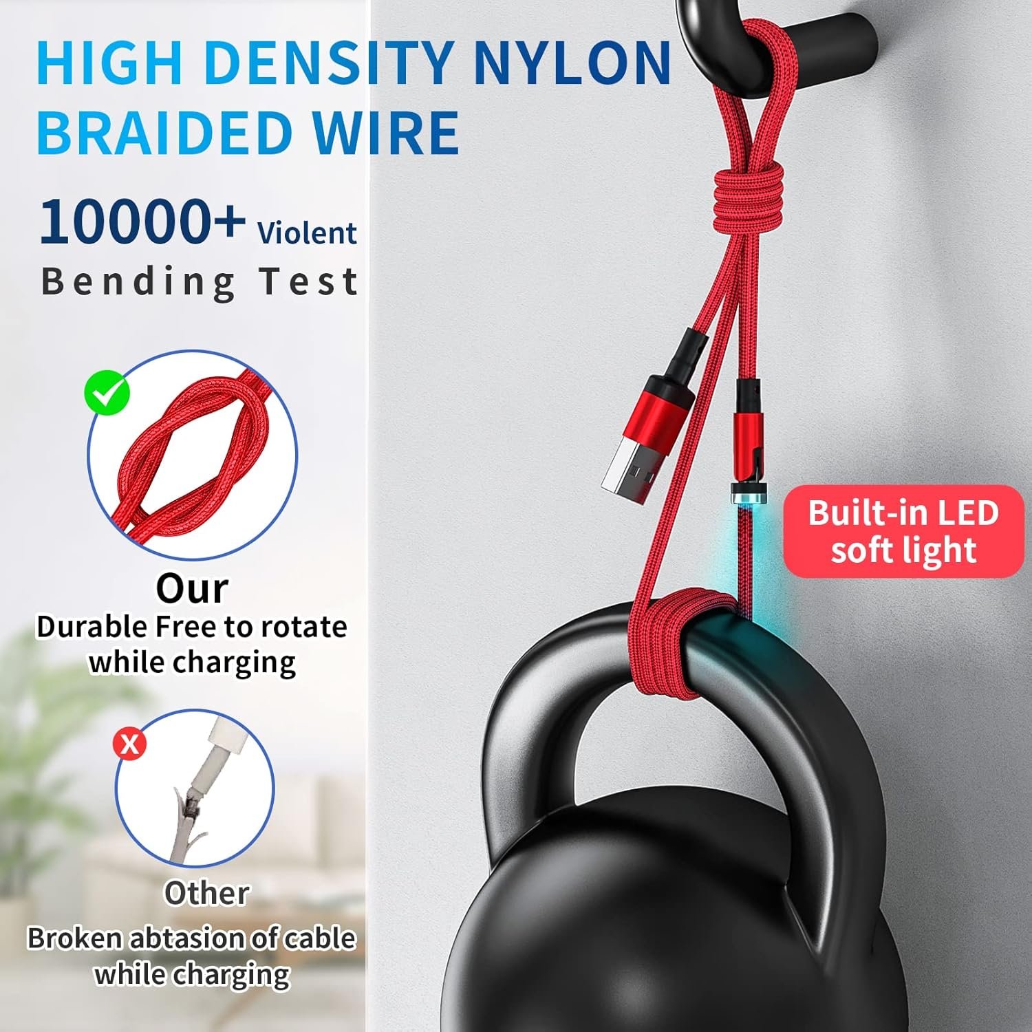 ⚡MAGNETIC CHARGING CABLE – 540° Rotating magnetic design, automatic adsorption, one-touch charging, no need to consider the charging angle, no need to worry about finding the charger cable at night. 3-in-1 LED light magnetic phone charging cable meets all your needs, compatible with most devices (Micro USB & Type C & iProduct), the best charging companion for your phone.