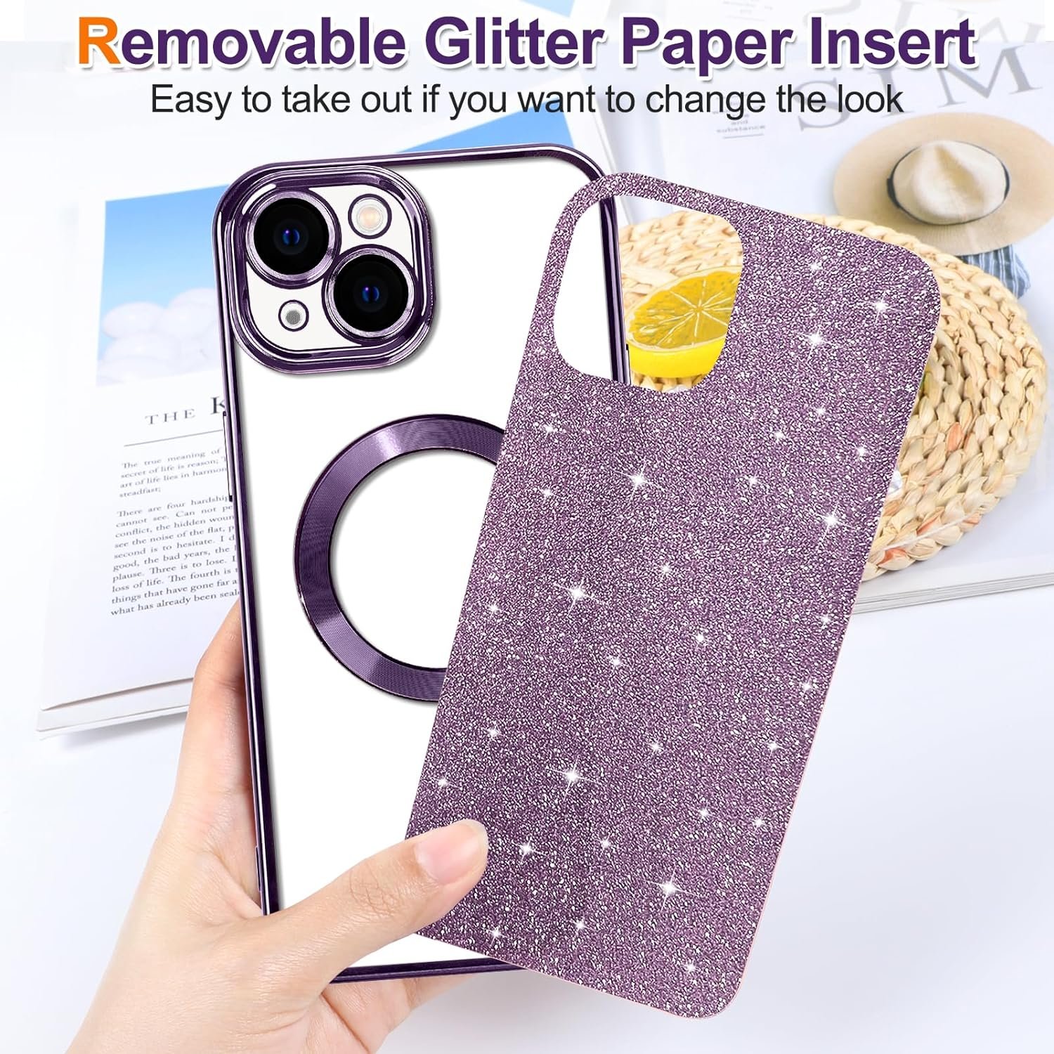 [Clear & Glitter Design]: This sparkle iPhone 13 phone case is designed to be clear with a piece of glitter paper; The stunning glittery part can be removed and it is optional to use the glitter paper insert; Very easy to take out if you want to change the look; You can also decorate the phone case with your favorite picture and drawing