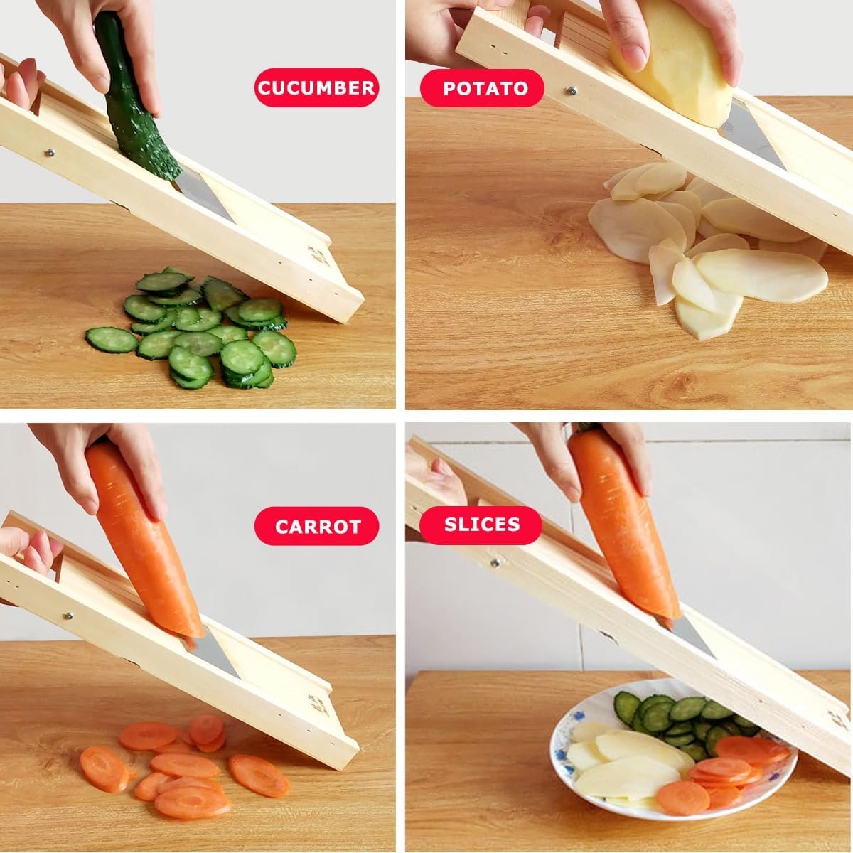 H&Zebrabro Wood Manual Potato Slicer Slices Thickness Adjustable with Carbon Steel Sharp Blade, Wooden Mandoline Slicers for Cumber Carrot Apple Onion Fruit Veggie, Kitchen Tools