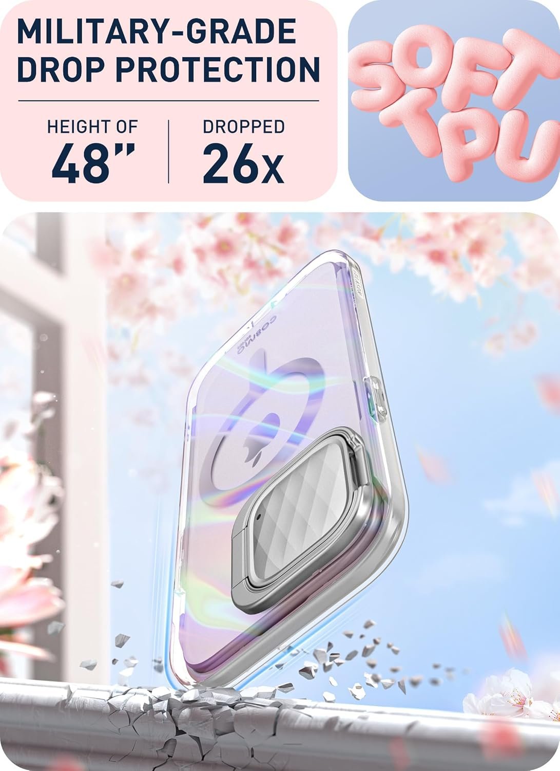 [Drop Protection] Flexible, impact-resistant TPU provides reliable, stellar protection from scrapes, bumps, or falls.(10-ft drop tested)