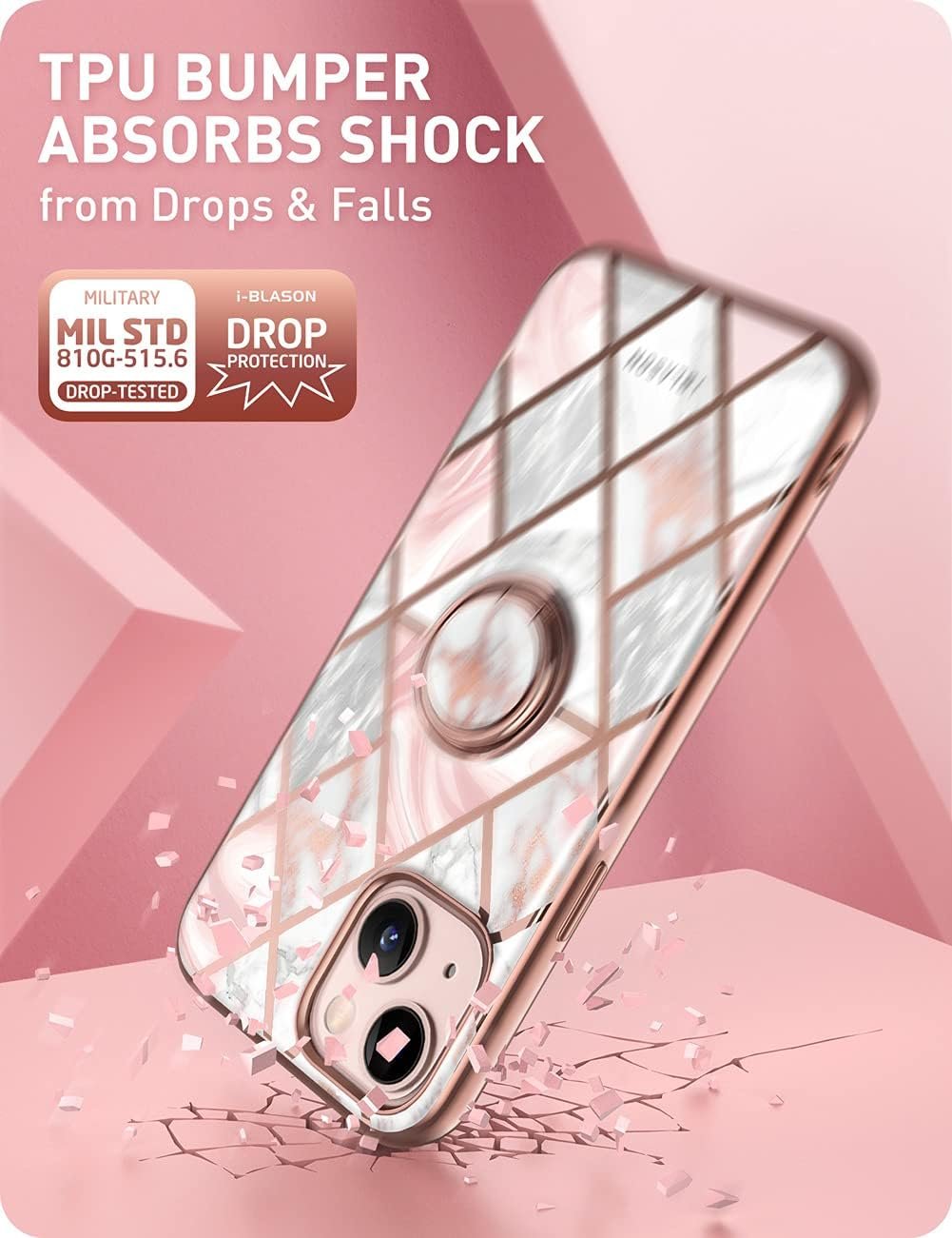 Shock-absorbing TPU bumper and air-cushioned corners protect against bumps, drops and scratches