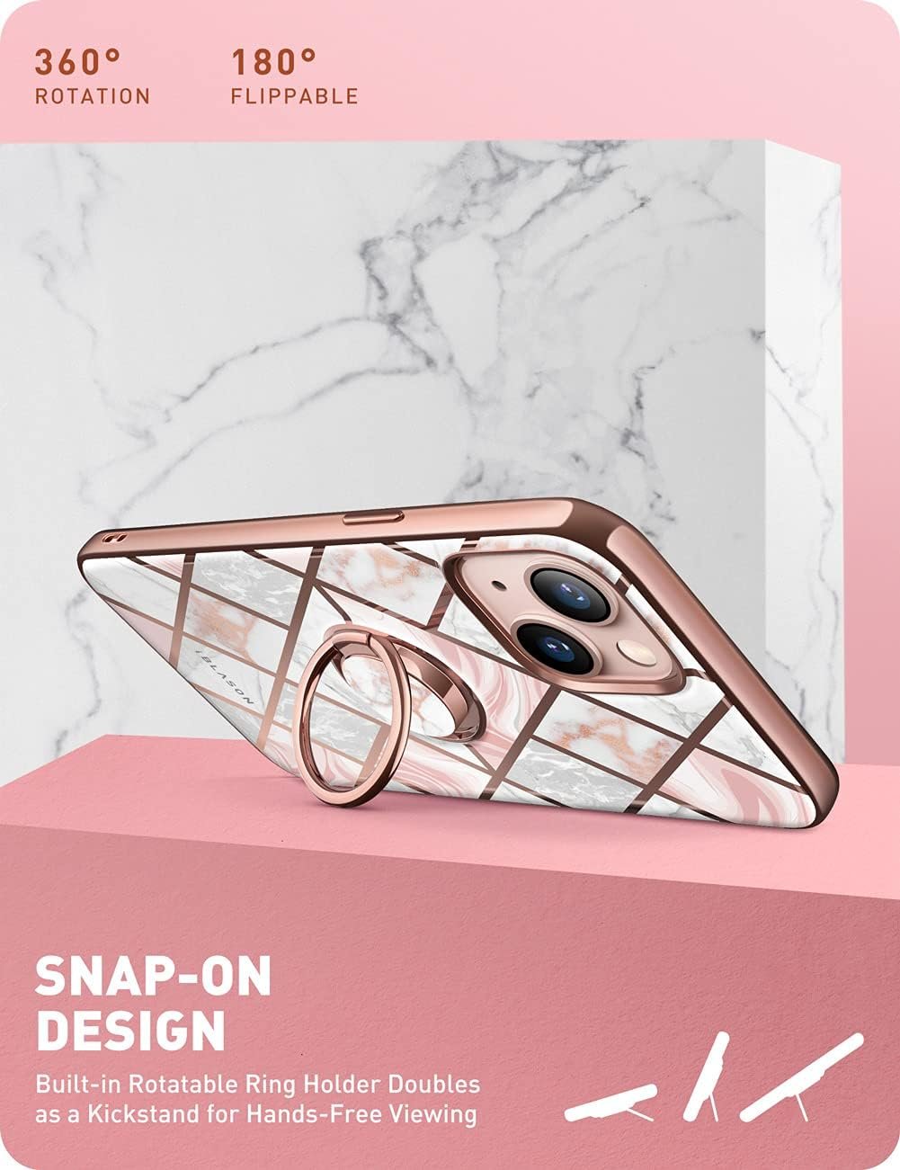 The built-in 360 degree adjustable ring holder fits comfortably over your finger to provide extra security when holding the phone, and can also be used as a stand for hands-free viewing