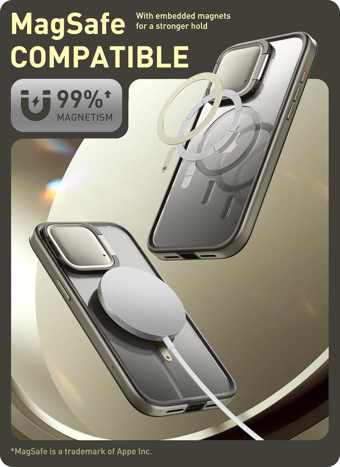 [Stronger Magnetic Absorption] Built-in 12X Strongest N55 magnets offers faster and more efficient MagSafe wireless charging. It also works with MagSafe wallet and magnetic car mount.