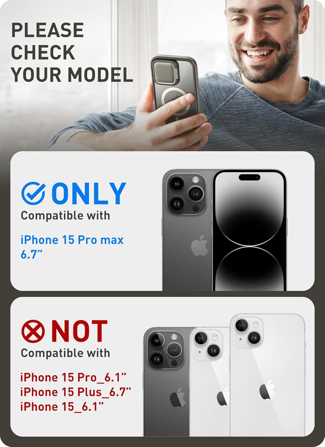 [Compatibility] iPhone 15 Pro Max case compatible with iPhone 15 Pro Max 6.7 Inch (2023 Release) . Compatible with MagSafe and other wireless chargers.