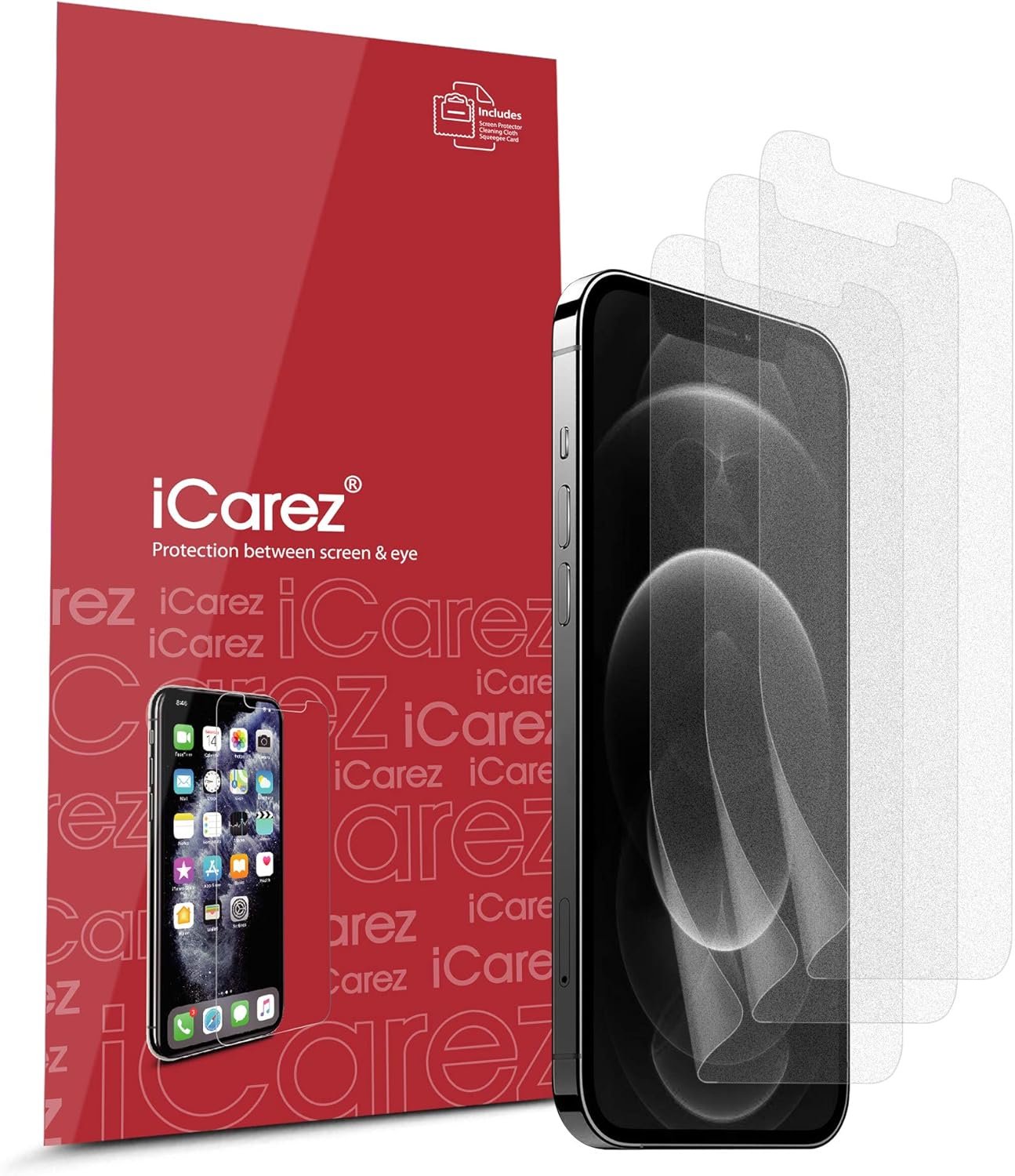 iCarez Matte Screen Protector for iPhone 12 /iPhone 12 Pro (2020) 6.1-Inches, 3-Pack Anti-glare