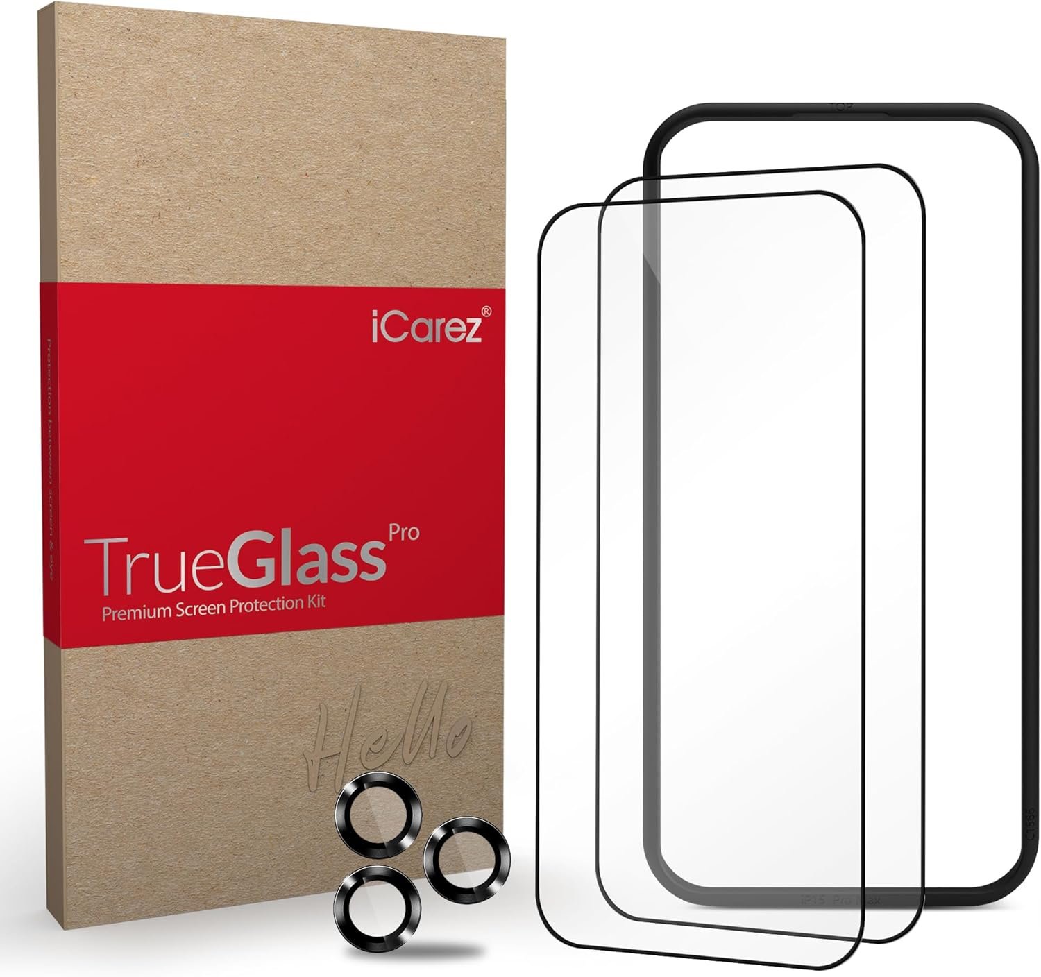 Be the first to review “iCarez Tempered Glass Screen Protector for iPhone 15 Pro Max 6.7-inches 2023 [2-Pack] Case Friendly Full Coverage Tray installation Black Frame”