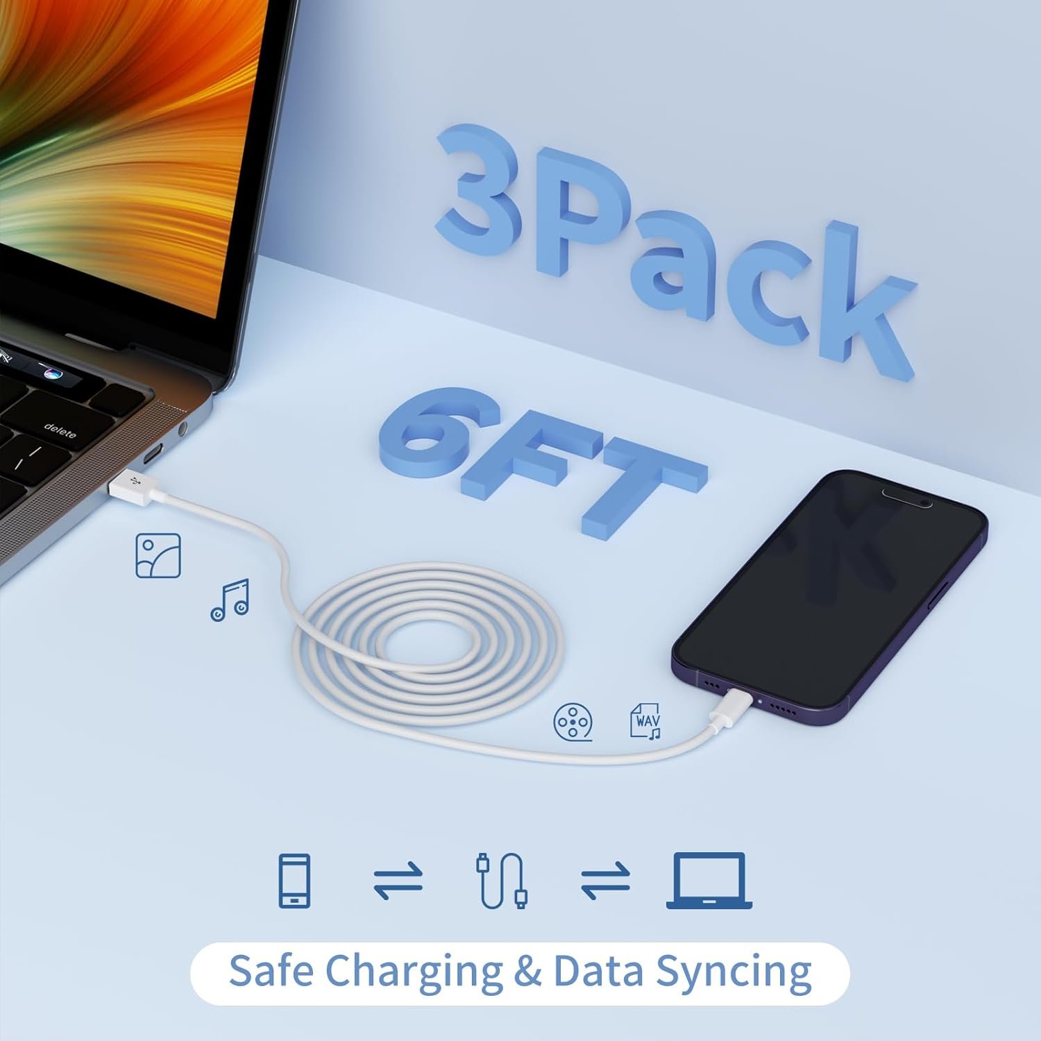 【Cost-Effective】:3pack 6ft iphone charging cords will be the best and cost effecitve replacement of the original fast charging iphone cable. Our items offers you 6-month repaird and if you have any issues, please let us know and we will solve it within 12 hours.