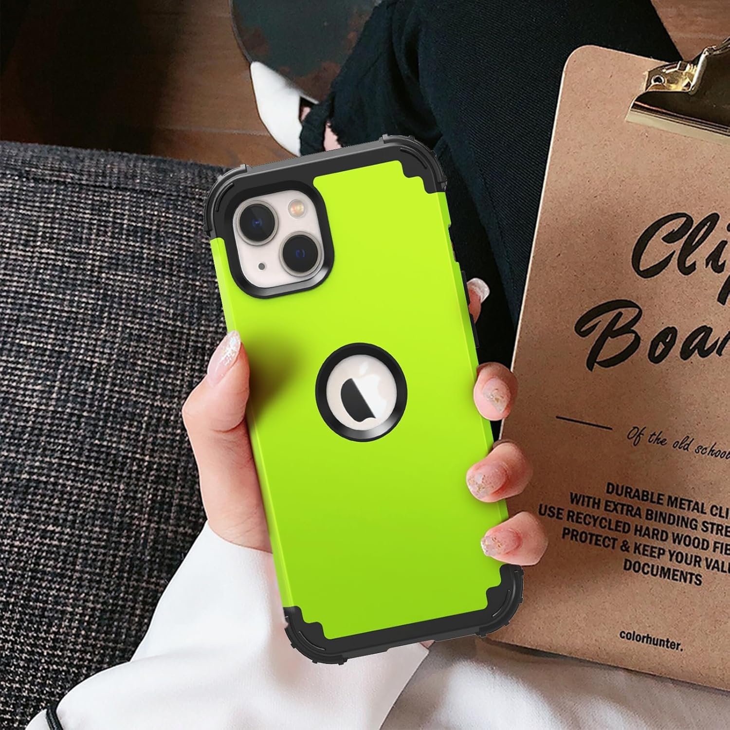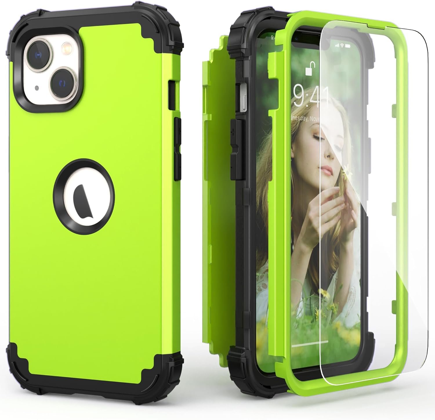 IDweel for iPhone 13 Case with Screen Protector, for iPhone 14 Case, Hybrid Shockproof Heavy Duty Protection Hard PC Cover Soft Silicone Sturdy Bumper Full Body Cover,Grass Green/Black