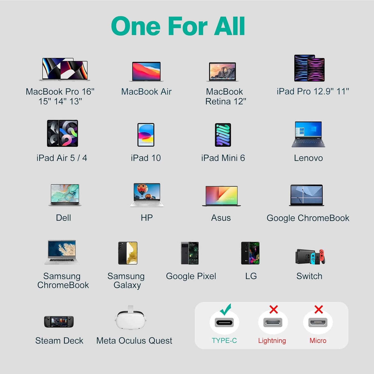 Universal Compatibility: perfect match all PD USB C charger, widely compatible with iPhone 16, 16Pro, 16Plus, 16Pro Max, iPhone 15, 15Pro, 15Plus, 15Pro Max, M1 M2 MacBook Air, Mac Book Retina 12 inch, 2023 2022 2021 2020 2019 2018 MacBook Pro 13 14 15 16 inch, 2024 M4 iPad Pro 13 11 inch, 2024 M2 iPad Air 13 11 inch, iPad Pro 12.9 inch 6th 5th 4th 3rd generation, iPad Pro 11 inch 4th 3rd 2nd 1st, iPad Air 5th 4th, iPad Mini 6, iPad mini (A17 Pro), iPad 10, Samsung Galaxy S23, S23+, S23 Ultra, S22, S21, S20, S10, Google Pixel 7 Pro, 7, 6a, 6 Pro, 6, LG, Moto, USB C port Lenovo, Dell, HP and any USB-C device