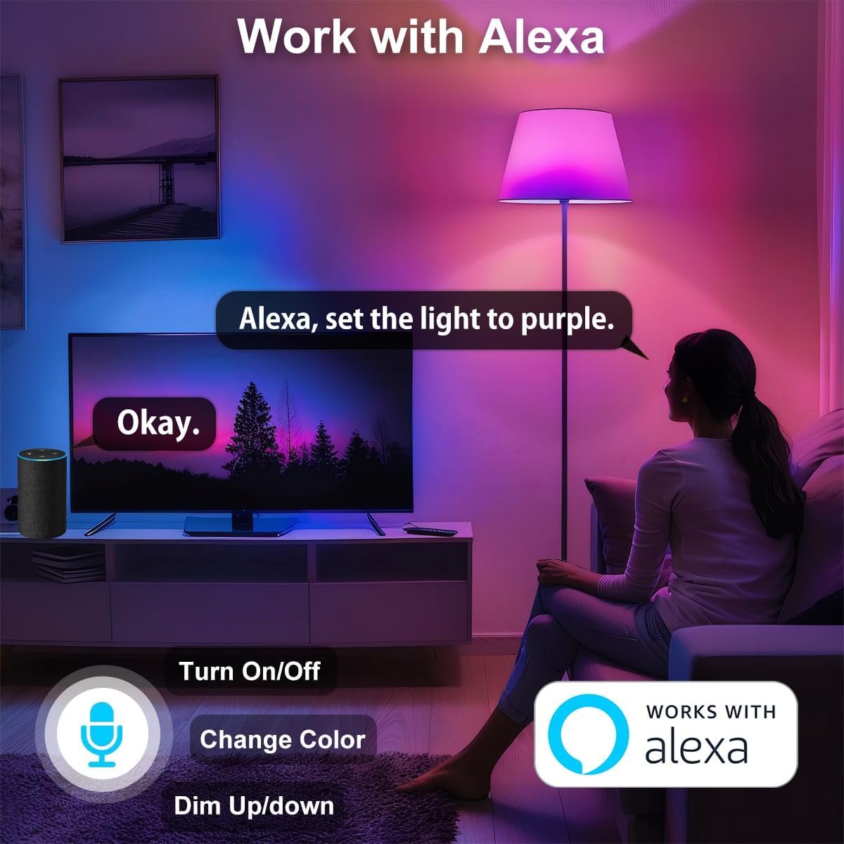 The 10W Alexa bulb can be controlled through voice commands or app. Our smart bulb offers adjustable brightness from 1% to 100%, with a warm white 2700K, CRI≥90Ra, low blue light, no flickering, 900 lumens, equivalent to a 70W. Additionally, it offers 16 million colors, 25 dynamic modes, music sync, and 9 scenes. It operates on Bluetooth MESH technology, which does not consume router bandwidth. (Not compatible with dimmer switches)