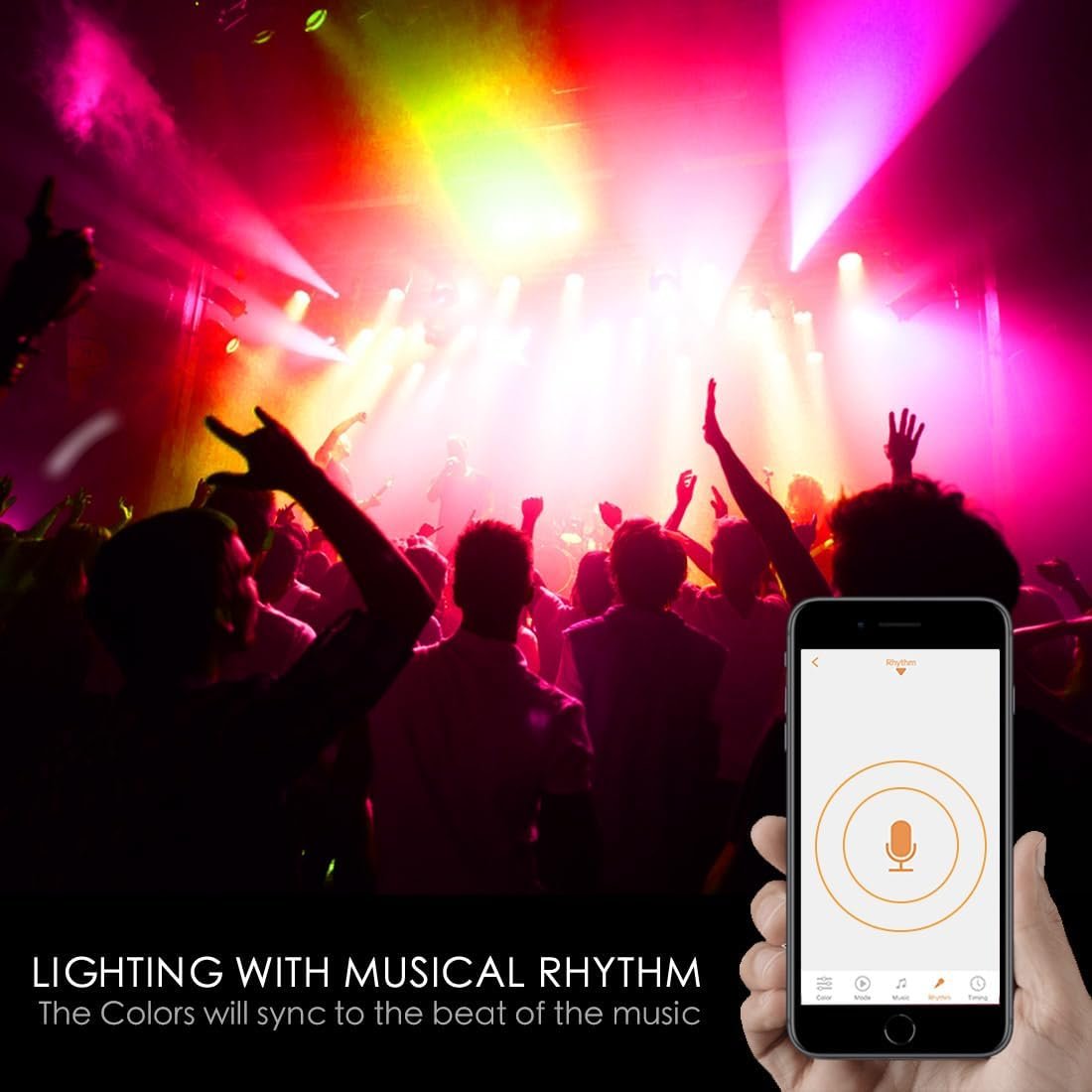 LED RGBW with Bluetooth, 16 million colors, music rhythm, and multiple modes,2700K warm white light, CRI>85Ra, equivalent to 70 watt incandescent, adjustment brightness via app, Timing function.