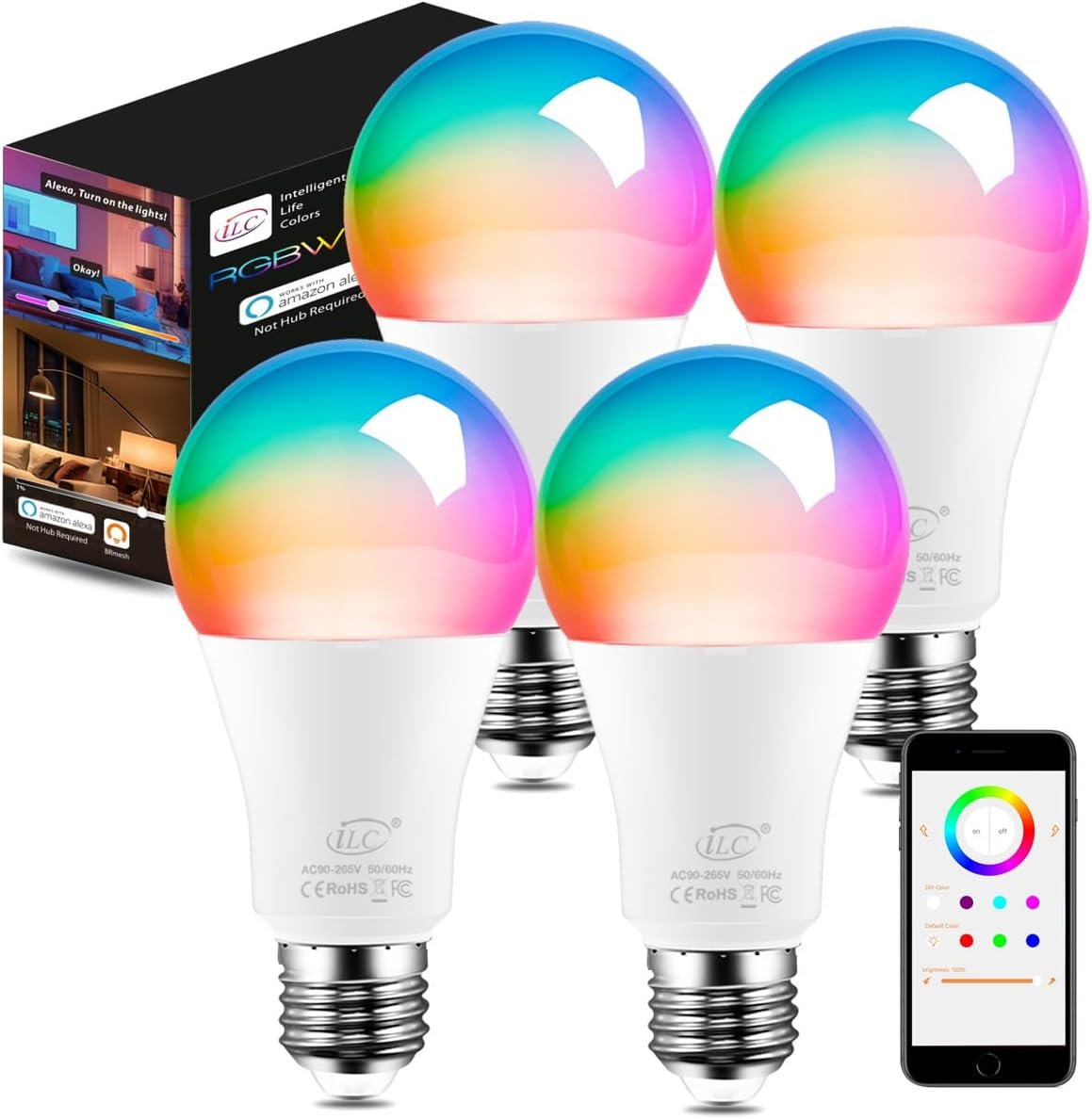 ILC Alexa Light Bulbs (130 Watt Equivalent) Smart Light Bulbs Work with Alexa Only, 1300 Lumens, Color Changing Warm White 2700K, 13W Bright LED Bulbs (4 Pack)