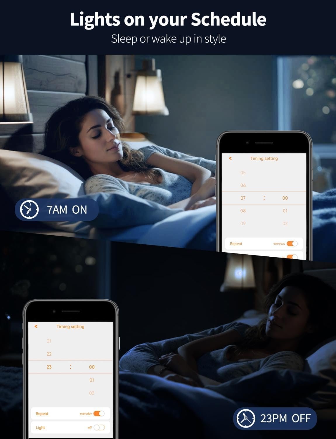Musical rhythm & 25 dynamic mode:Through the BRmesh app, you can choose from the many color options and dynamic modes, and even activate the music synchronization feature. With a palette of 16 million colors and 25 dynamic color modes, it is designed to cover all your festive needs. Music Synchronization can dance to the rhythm of your favorite tunes. It is ideal for parties and dates. Note: Works only when the microphone is not occupied. Download Brmesh App and enable microphone permissions.