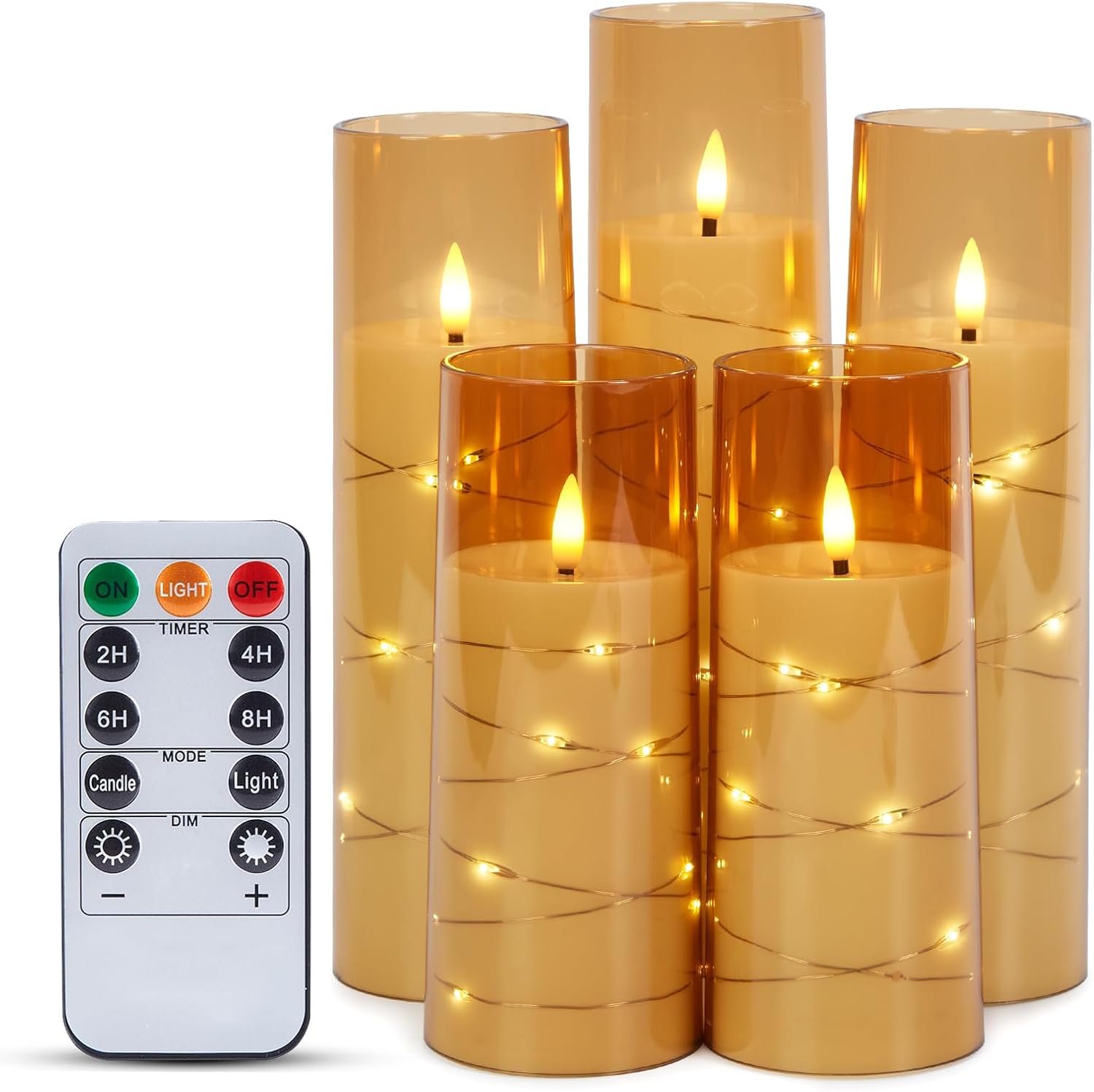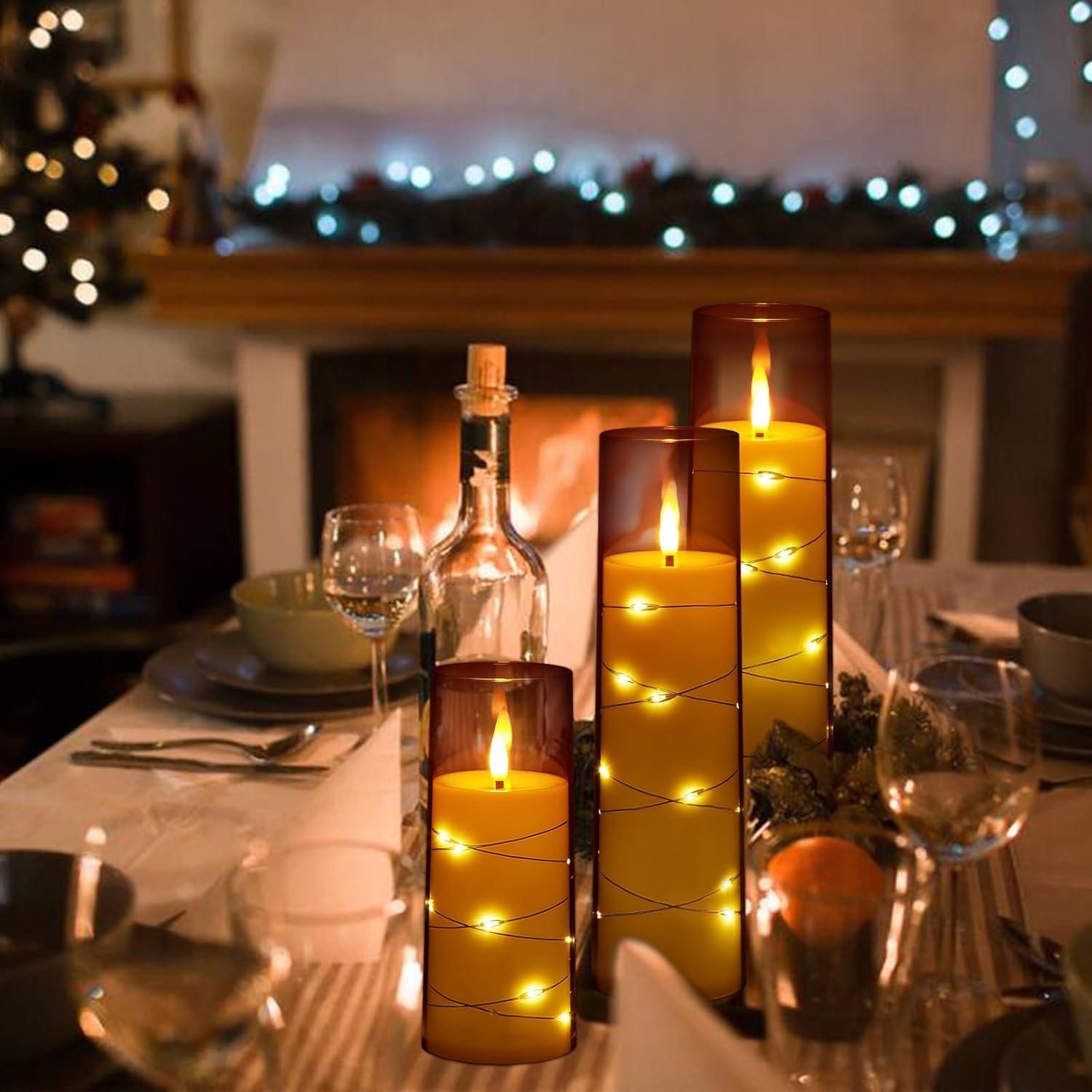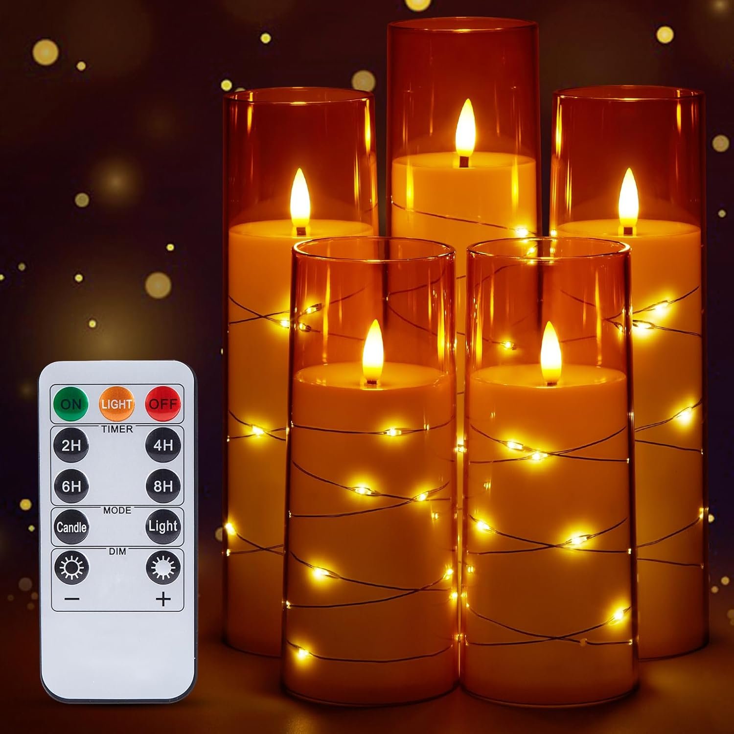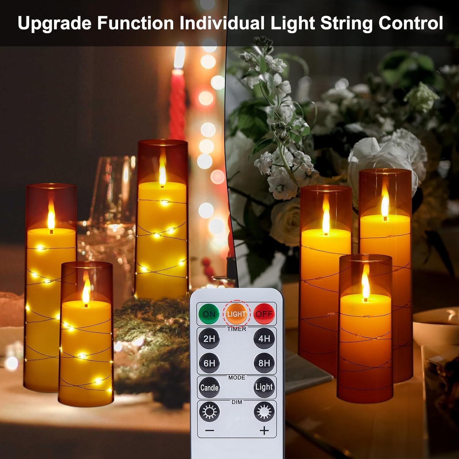 INDIVIDUALLY CONTROLLED LIGHT STRINGS: Our flameless candles feature an upgraded 11-key remote control (CR2025 battery included) for easy operation. The embedded light strings can be individually controlled using the “LIGHT” button on the remote. These candles cater to diverse decorative needs, adding an elegant touch to any setting.