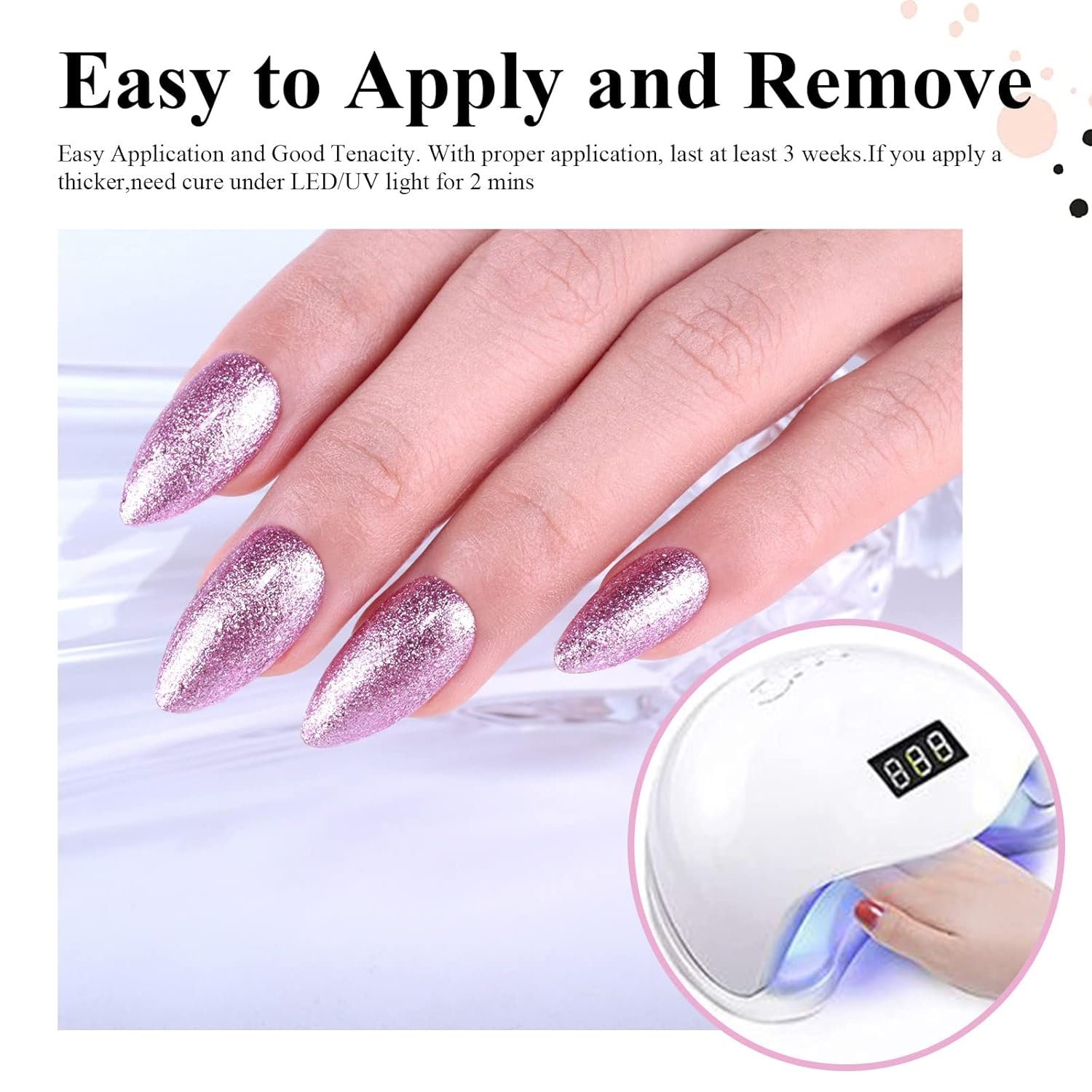 Speed Curing with UV/LED Nail Lamp: The gel nail polish kit need to be cured under LED light. Base and Top coat required. Average for LED light 60-120 secs. (Not included with separate purchase of primer and topcoat and UV gel lamp separately)