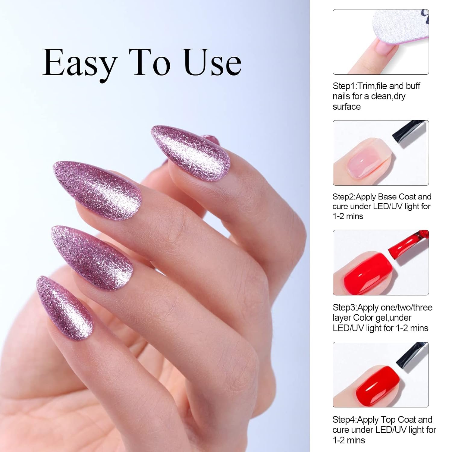 Easy to Apply & Ideal Gifts: The Glitter Gel Nail Polish is easy to use. It achieves intense color, ultra-precise application without leaking out of nail beds .Every stroke is unbelievably fluid for a defined finish, also beginners can draw a perfect look.This set of nail gel polish is a great gift for girlfriend, wife, mother, daughter, sister on Valentine’s Day, Mother’s Day, Thanksgiving, Christmas, Birthdays, Anniversaries, etc