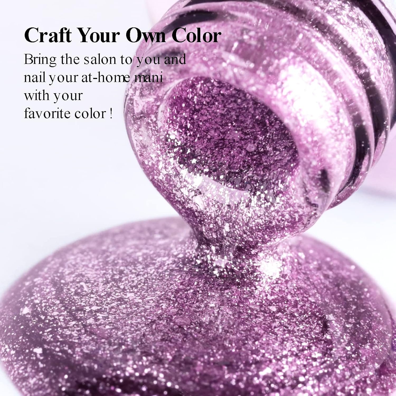 Gel nail polish: 1 Pcs 15ml (0.5oz) Big Capacity Glitter Orchid Purple nail gel polish ,Elegant shades of popular and trendy colors suitable for all seasons . It signifies confidence and elegance during any season or occasion