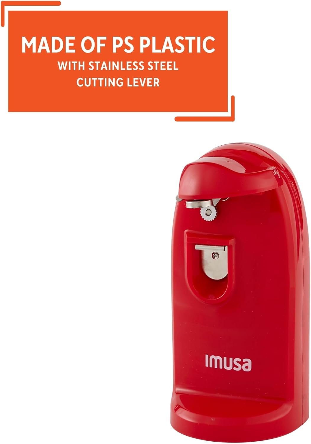 The IMUSA Electric 3 in 1 Can Opener is a versatile and convenient tool that effortlessly handles a variety of kitchen tasks. Designed to fit all sizes of cans, the IMUSA Electric 3 in 1 Can Opener is crafted from durable PS plastic with a stainless steel cutting lever, and a red stylish exterior. The IMUSA Electric 3 in 1 Can Opener is designed to fit all sizes of cans. Integrated with a bottle opener and a knife sharpener, this can opener caters to additional kitchen needs, and the magnetic lid holder prevents the lid from dropping into the can, ensuring a mess-free experience. Cleanup and storage are made easy with the removable cutting lever and a cord storage compartment, providing a tidy solution for your kitchen space. Whether you’re opening cans of various sizes, bottles, or sharpening knives, the IMUSA Electric 3 in 1 Can Opener is an ideal choice for everyday use. Trust the IMUSA Electric 3 in 1 Can Opener as your go-to kitchen helper. It will surely become your kitchen’s beloved companion simplifying and enhancing your culinary endeavors.