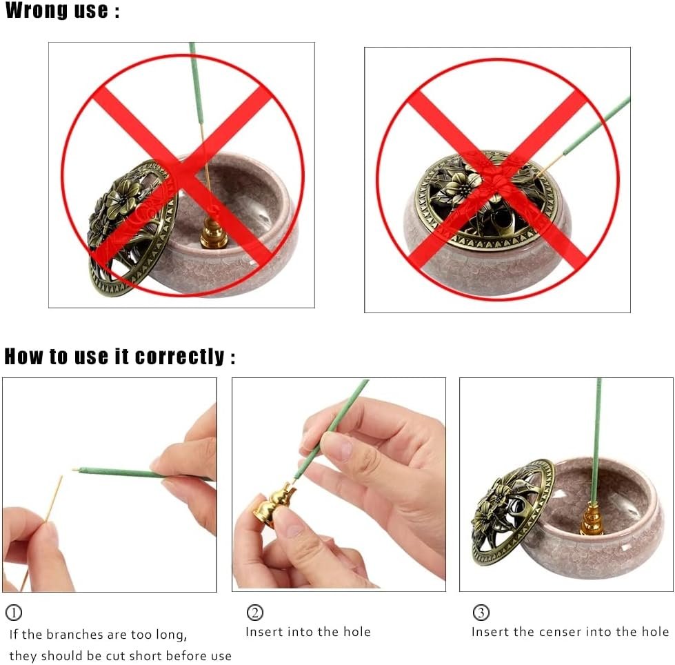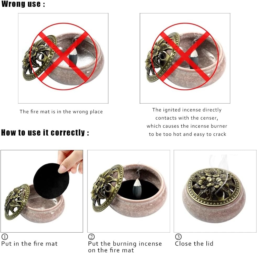 Unique Design- Every piece is unique:1 ceramic incense burner, catches the ashes to avoid dropping everywhere. 1 brass lotus and gourd incense stick holder, which is heavy enough to hold the stick securely. 1 alloy lid, made by the hollowing design, feels solid and elegant. 1 fireproof pad, prevents excessive heat from harming the incense burner.