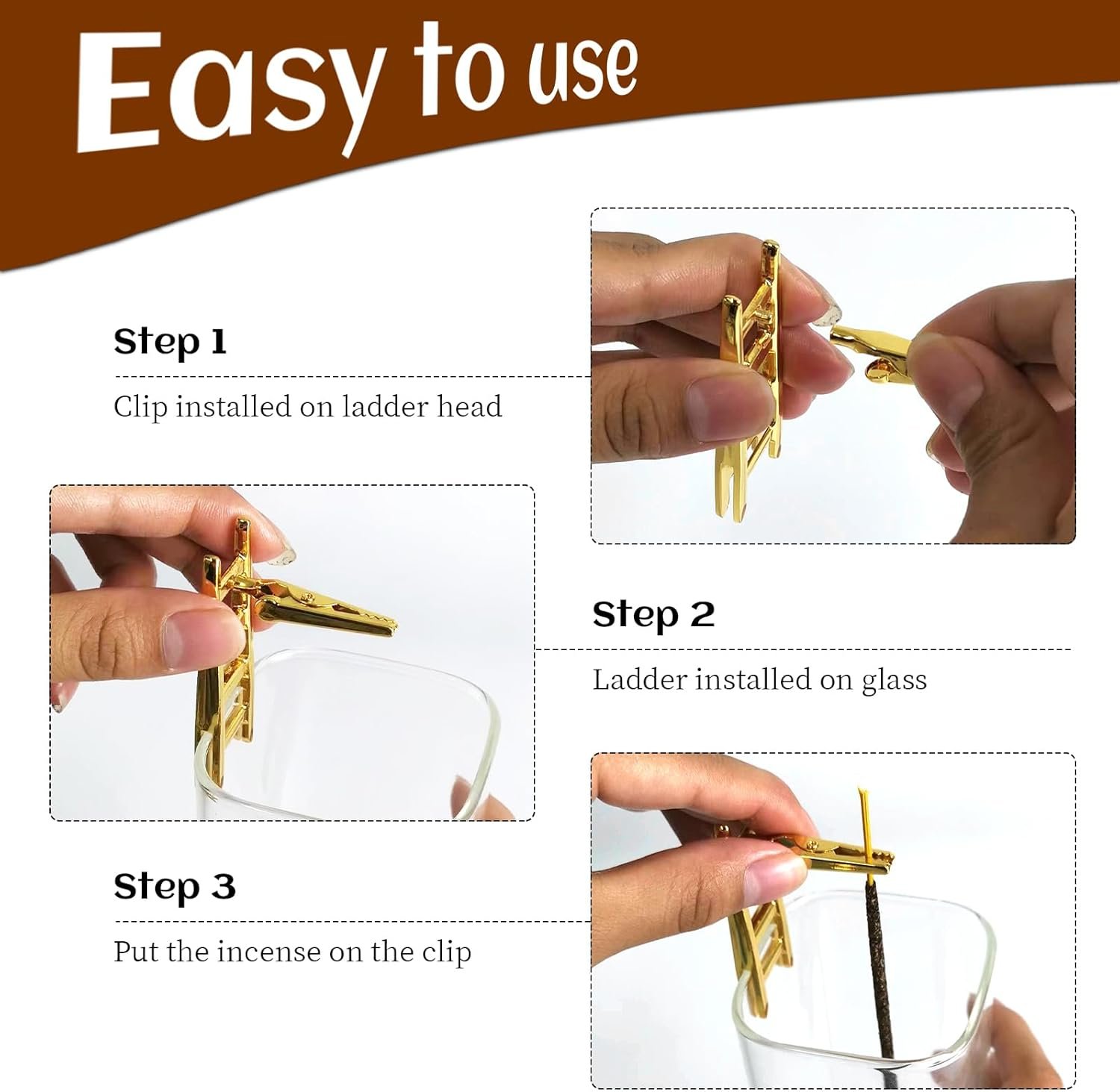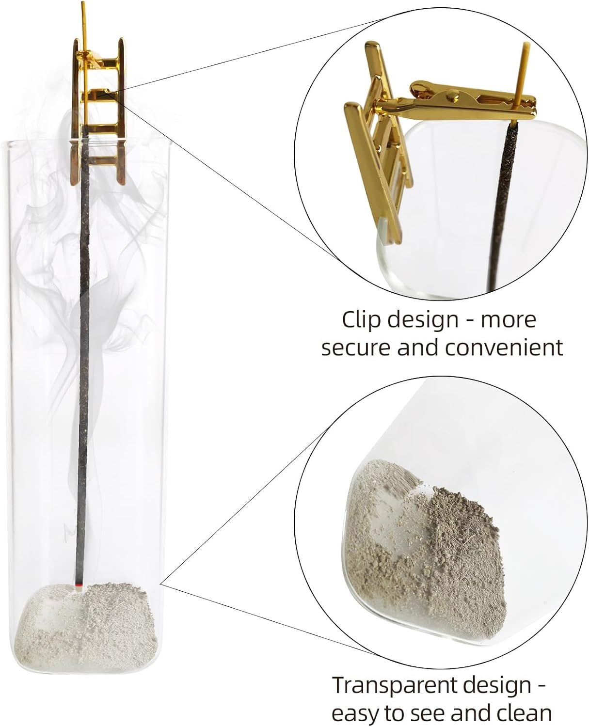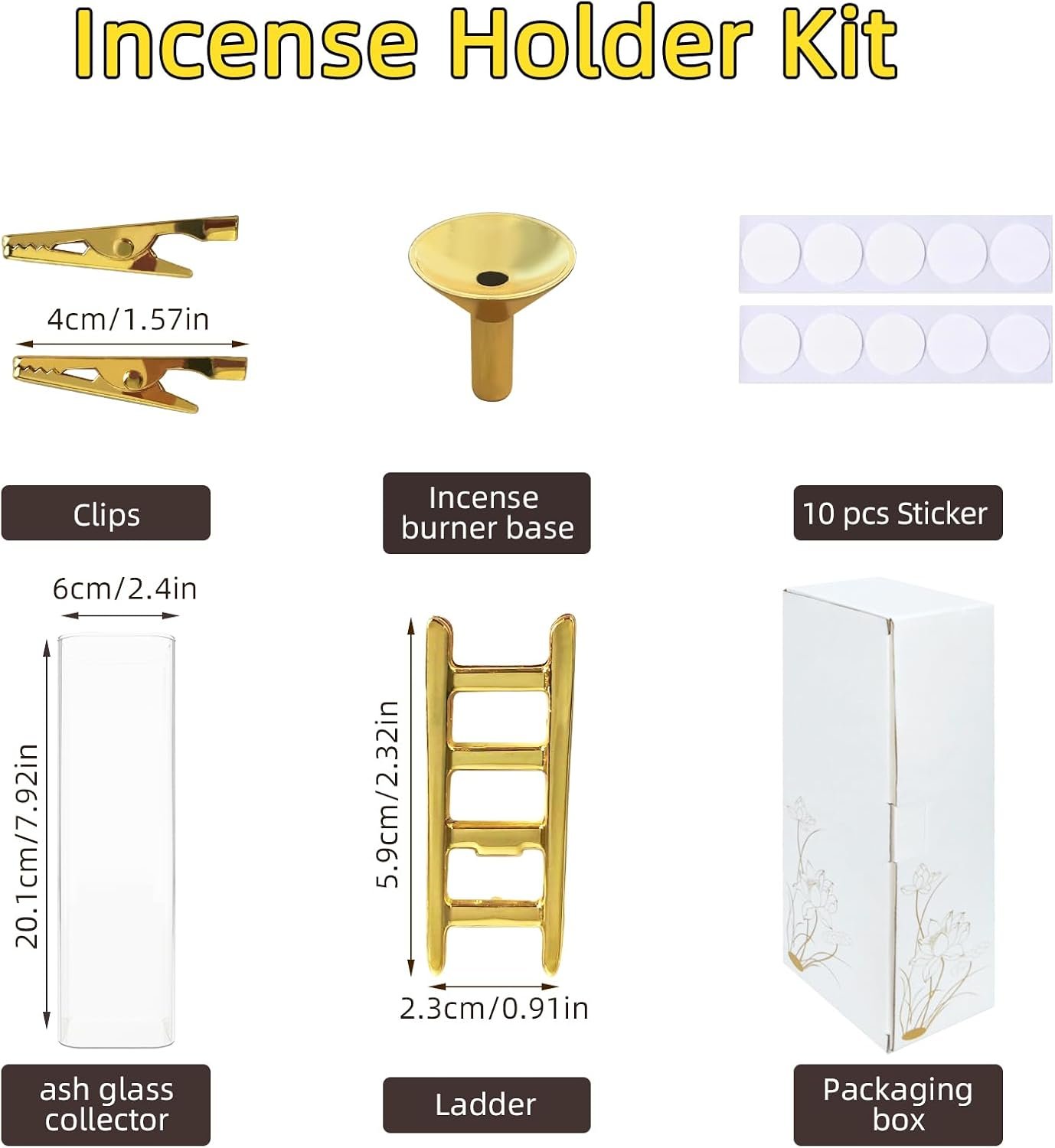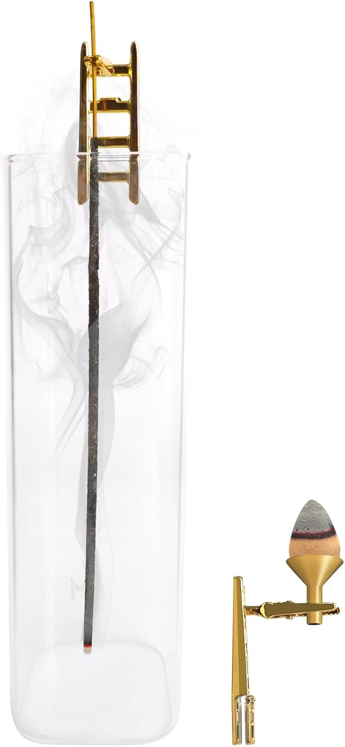 【No ashes from now on-Incense Holder】The beautiful incense holder with a glass, a cute golden Ladder standing on the glass burn the incense in the glass and you can now go about your business without worrying about the ashes falling around, the incense holder will catch all the ashes.
