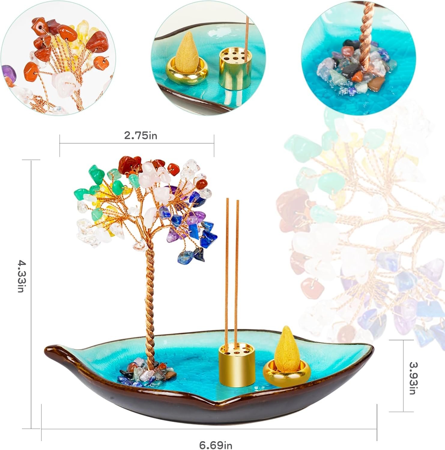 .Exquisite Home Decoration : Gemstone money tree incense holder, healing and decorative. The interior is smooth and does not stick to ash, just pour the ash into the trash and wipe with a rag to keep it as new. It is not only a incense holder, but also an exquisite handicraft.Can be placed as home decor, indoor or outdoor incense burner