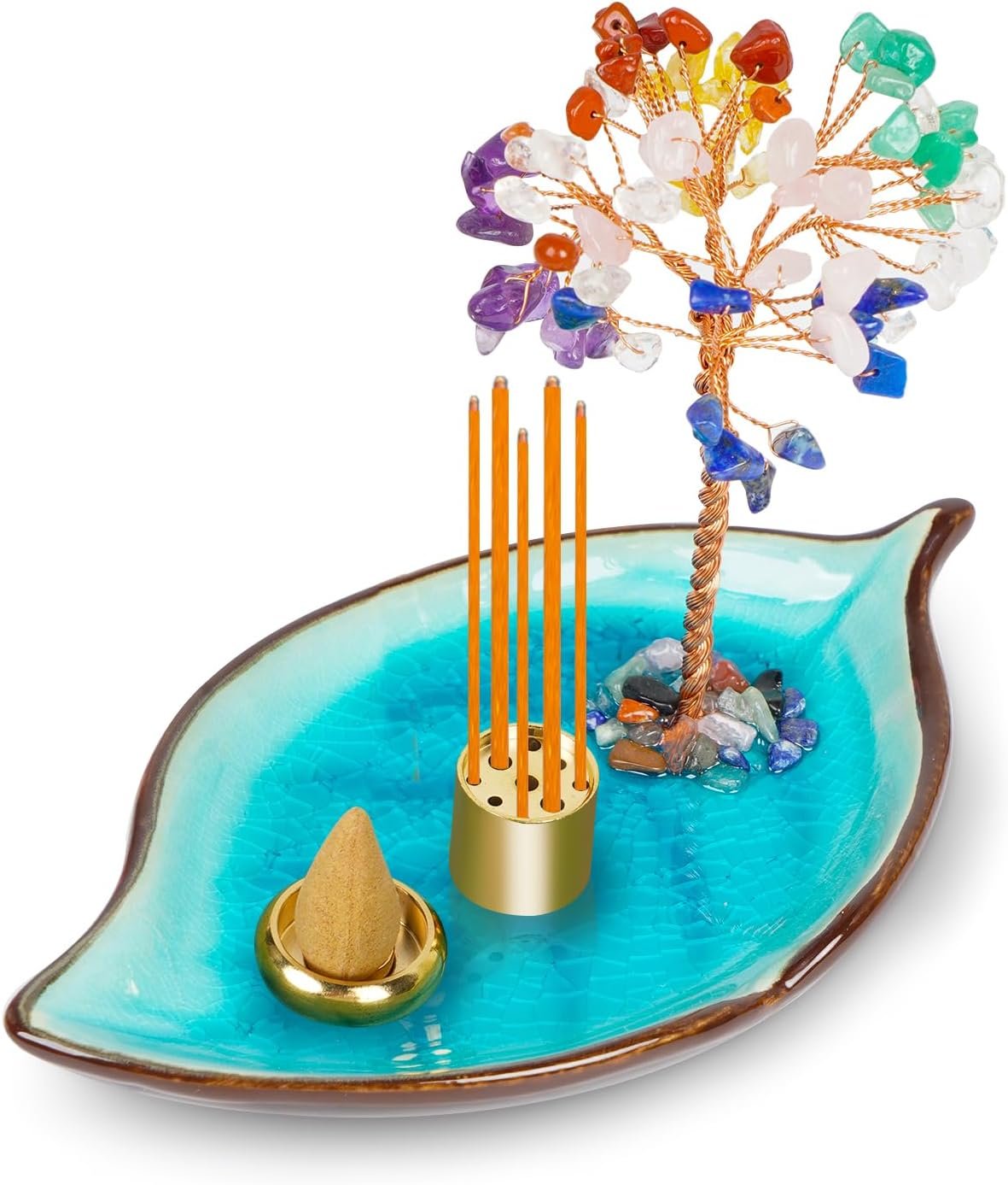 Healing Crystal Money Tree Incense Burner – Leaf Tray Gemstone money tree incense holder, healing and decorative. Nice choice: Suitable for home decor or as gift and as a Jewelry Tray, Decorative Trinket Dish for Rings Earrings Necklaces Bracelet Watch Keys.