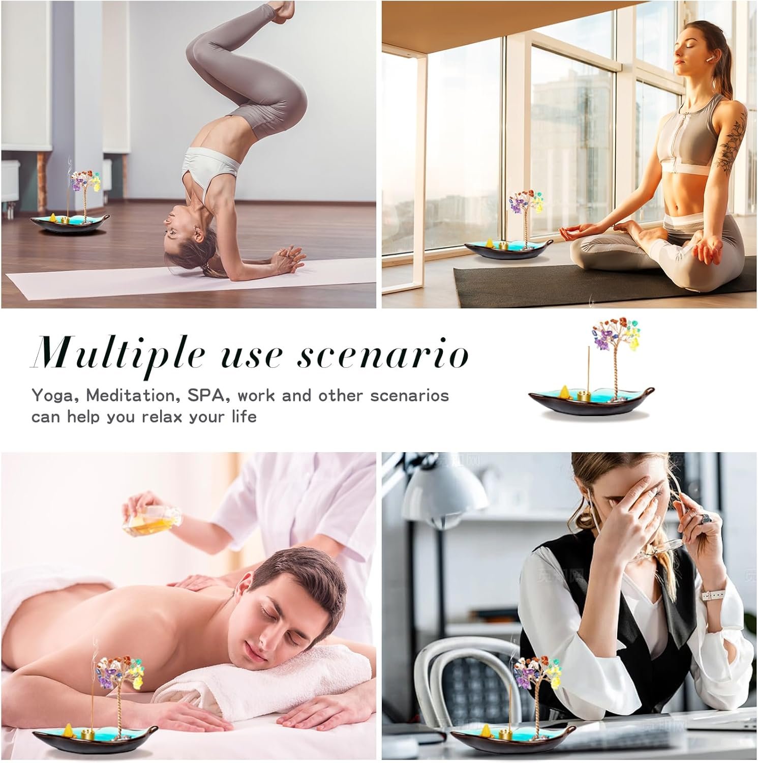 When you stay on home, yoga room, meditation room and Zen room, you can ignite the incense cones, to create relaxed and peaceful atmosphere, enjoy the rest time.The crystal tree design promotes harmonious energy and helps to align chakras while the incense holder can create a relaxing and calming environment for meditation practice.