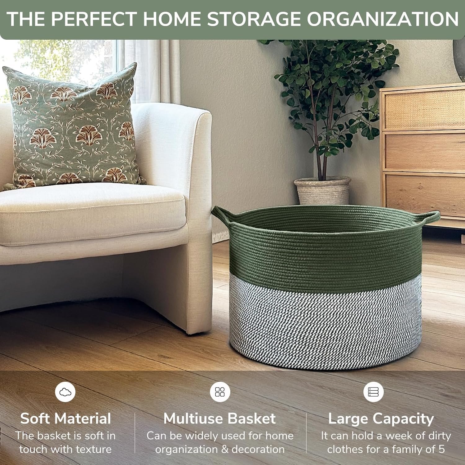 Stylish Home Décor. This large blanket basket with a simplistic design is a decoration for your living room, bedroom, or nursery, meeting storage needs while adding a touch of style to the home