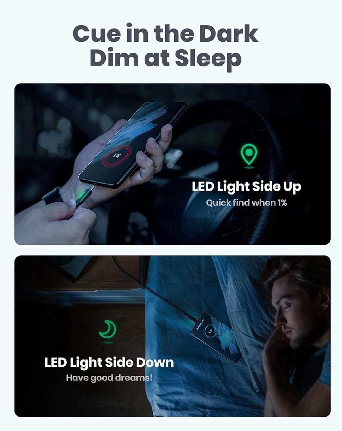 [Sleep-Friendly LED Indicator] Boast LED indicator at the USB C end to help you easily find it in the dark.
