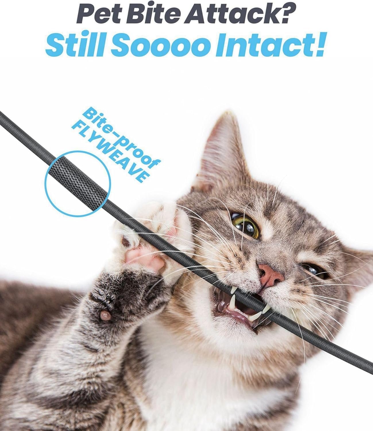 [The Strongest Construction] Exclusive FLYWEAVE braided coat & flexible taper joints, combine 250d bulletproof fiber core to build a cable so durable that will outlast your phone.