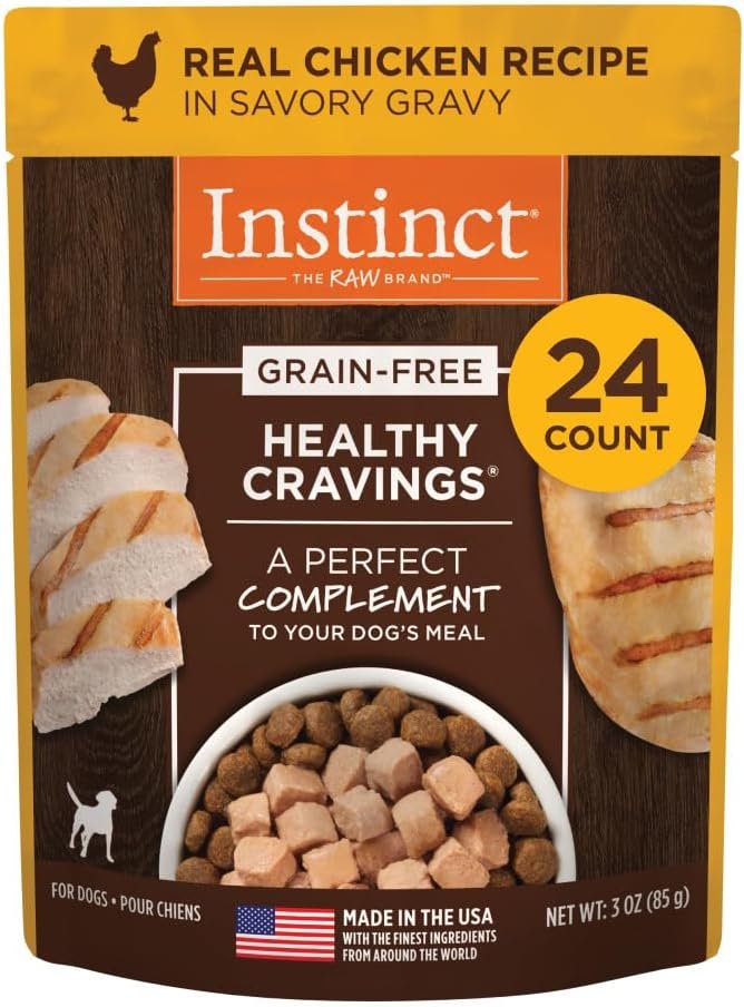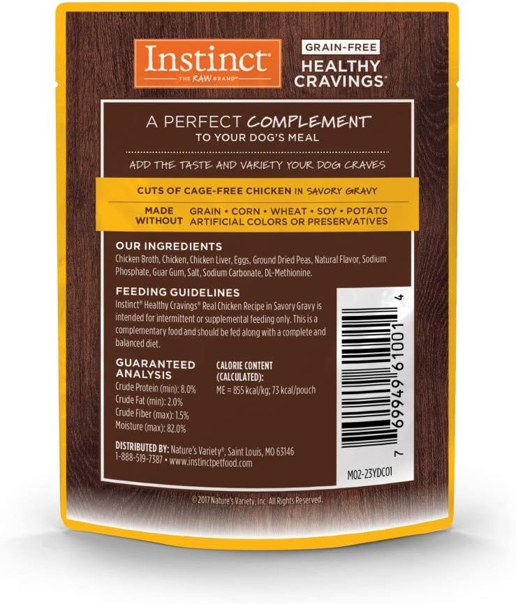 GRAIN FREE DOG FOOD TOPPER WITH CAGE FREE CHICKEN: Instinct Healthy Cravings wet dog food topper is the perfect natural dog food topper or dog treat for picky dogs and puppies. Add the delicious taste and variety that small dogs to large dogs crave.