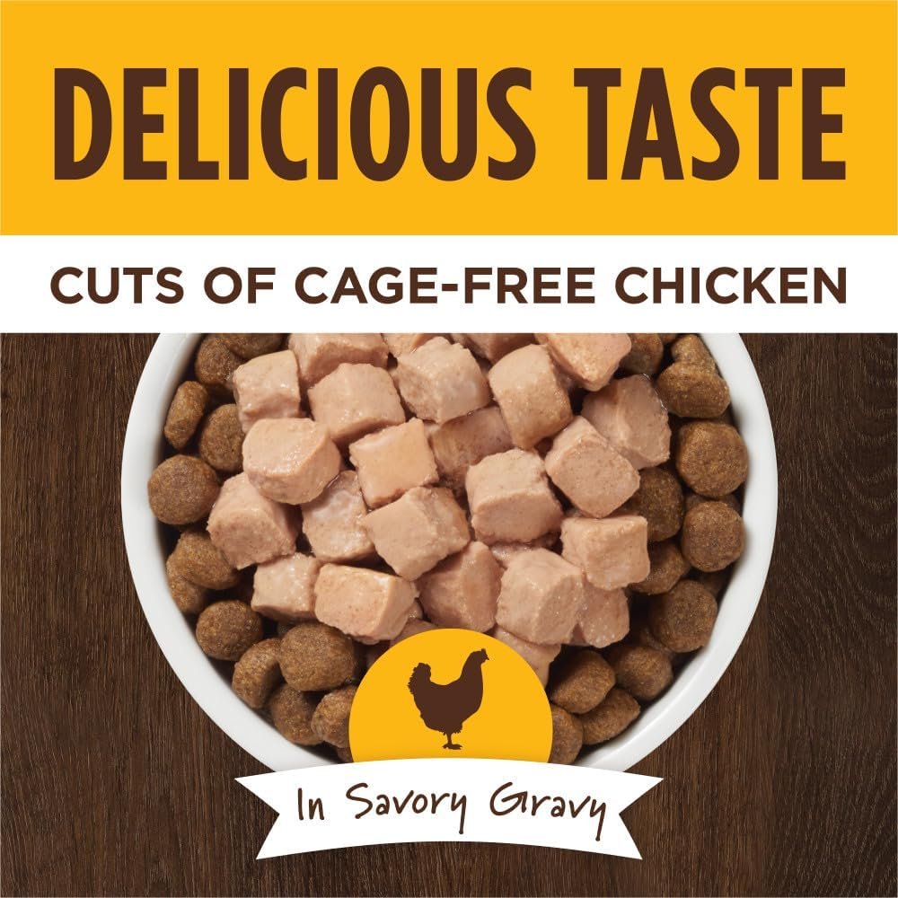 NATURAL WET DOG FOOD TOPPER WITH SAVORY GRAVY: Grain free cuts of cage free chicken in a savory gravy. Made without grain, potato, corn, wheat, soy, carrageenan, artificial colors or preservatives – ingredients known to trigger food sensitivities.