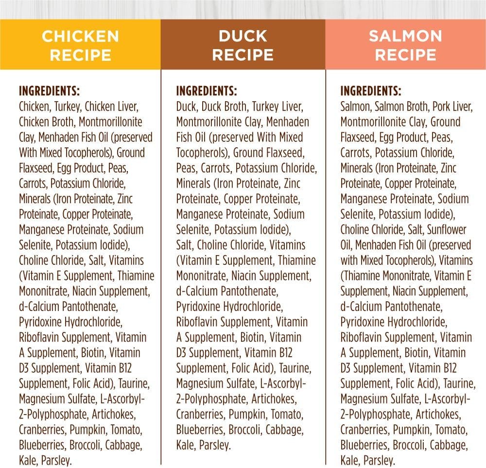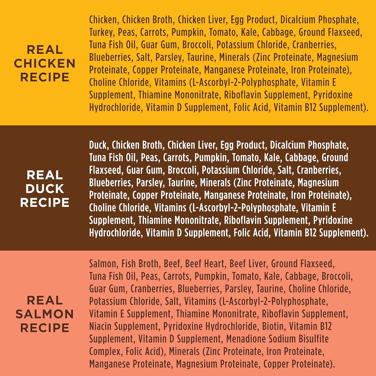HIGH PROTEIN CAT FOOD: Crafted with 95% real meat and organs and 5% wholesome ingredients, this grain free cat food wet recipe helps maintain strong, lean muscles. Includes cage-free chicken, duck, and wild-caught salmon for a truly balanced meal.