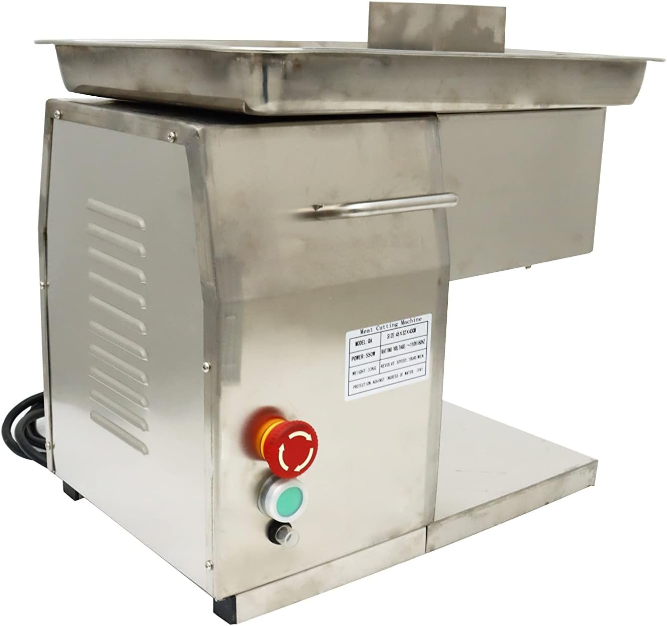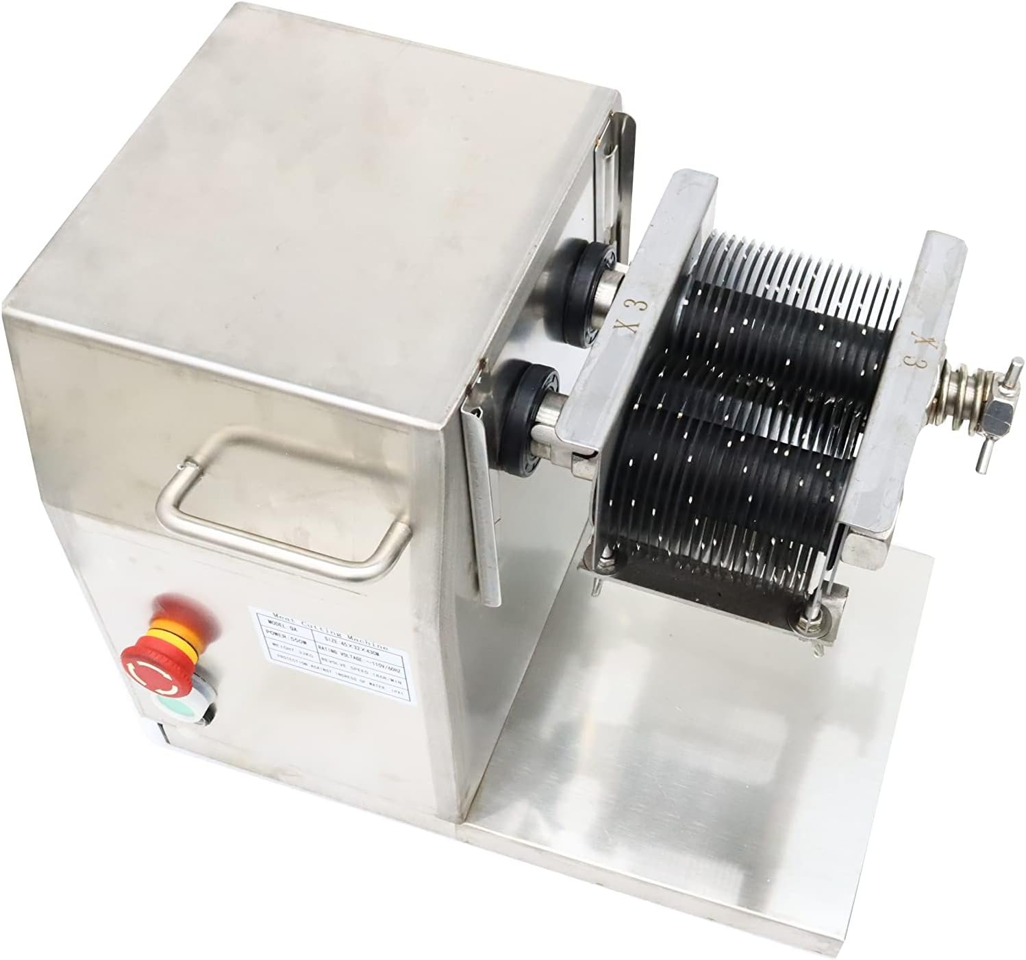 This stainless steel commercial meat slicer is suitable for small catering and meat processing businesses, kindergartens and small canteens.It can be applied to all kinds of pork, beef, mutton and all kinds of pickles.The first cut into flakes, the second into filaments, and the third into granules.