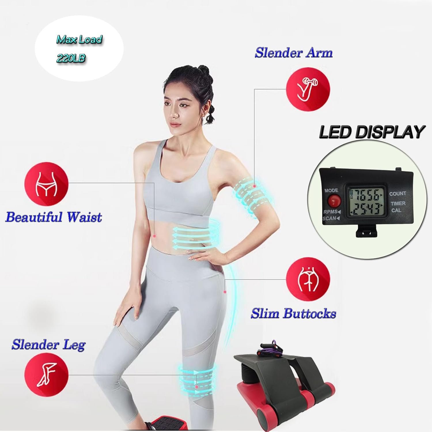 Full Body Workout: The resistance bands can work your arms, chest, back and shoulders, while twisting your waist, strengthening your muscles and providing a complete cardio workout. Stepper machine can help you get a shapely and toned body as well as a full body workout. Perfect for weight loss, body shaping and daily exercise