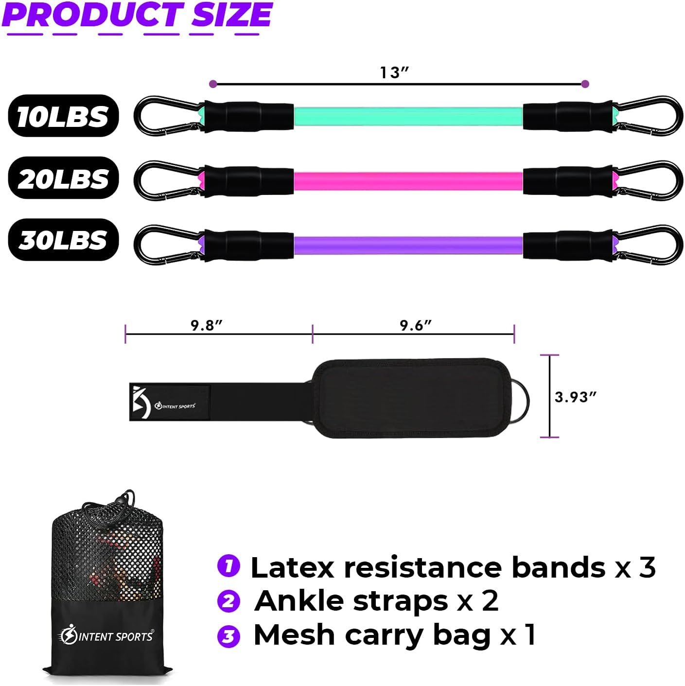 【PERSONAL HOME GYM】 – This ankle resistance band set includes 3pieces Tube bands, 1pair ankle Straps and mesh carrying case to allow you to perform the widest variety of resistance training exercises possible at home.You can also take your bands to Gym, Office, and even workout on vacation!