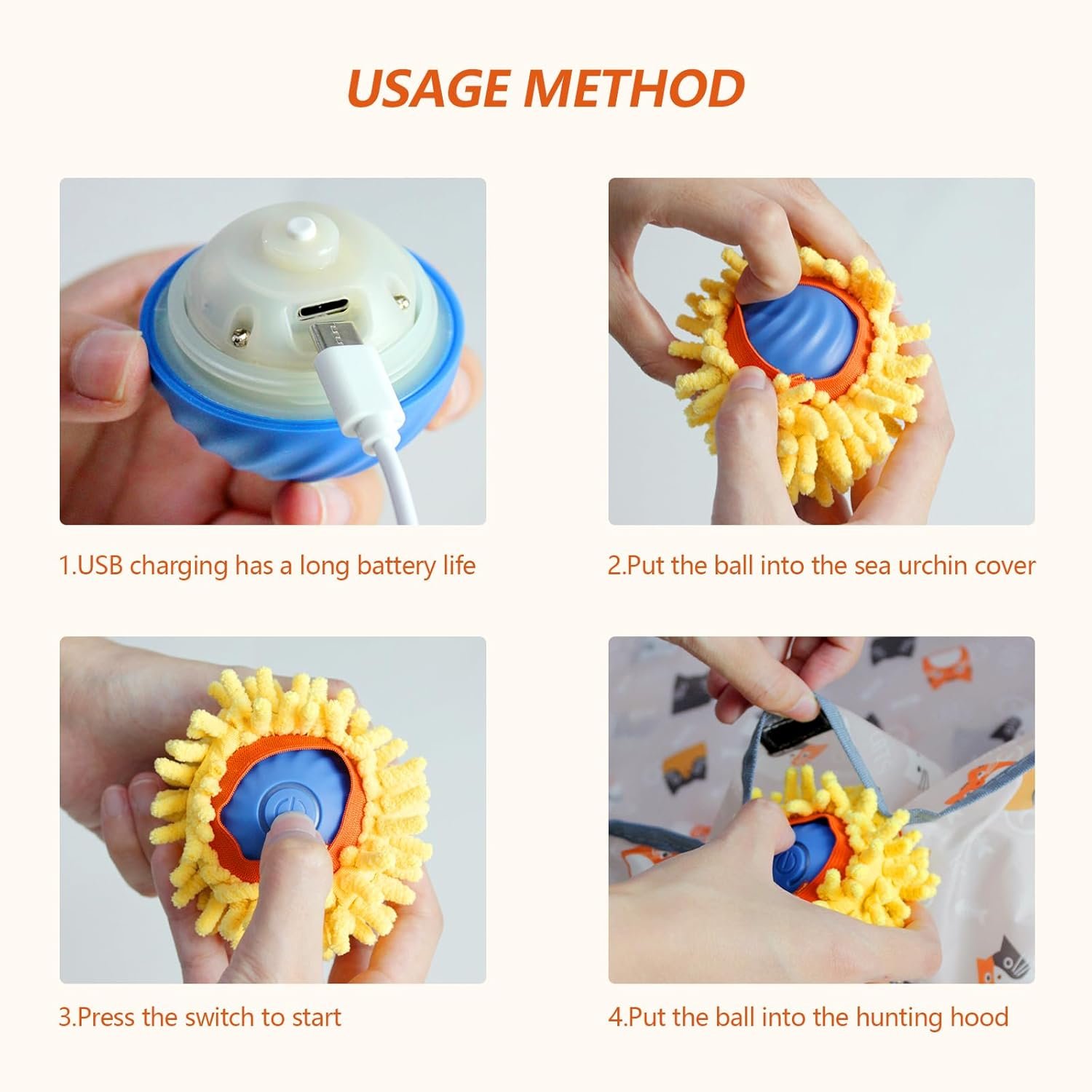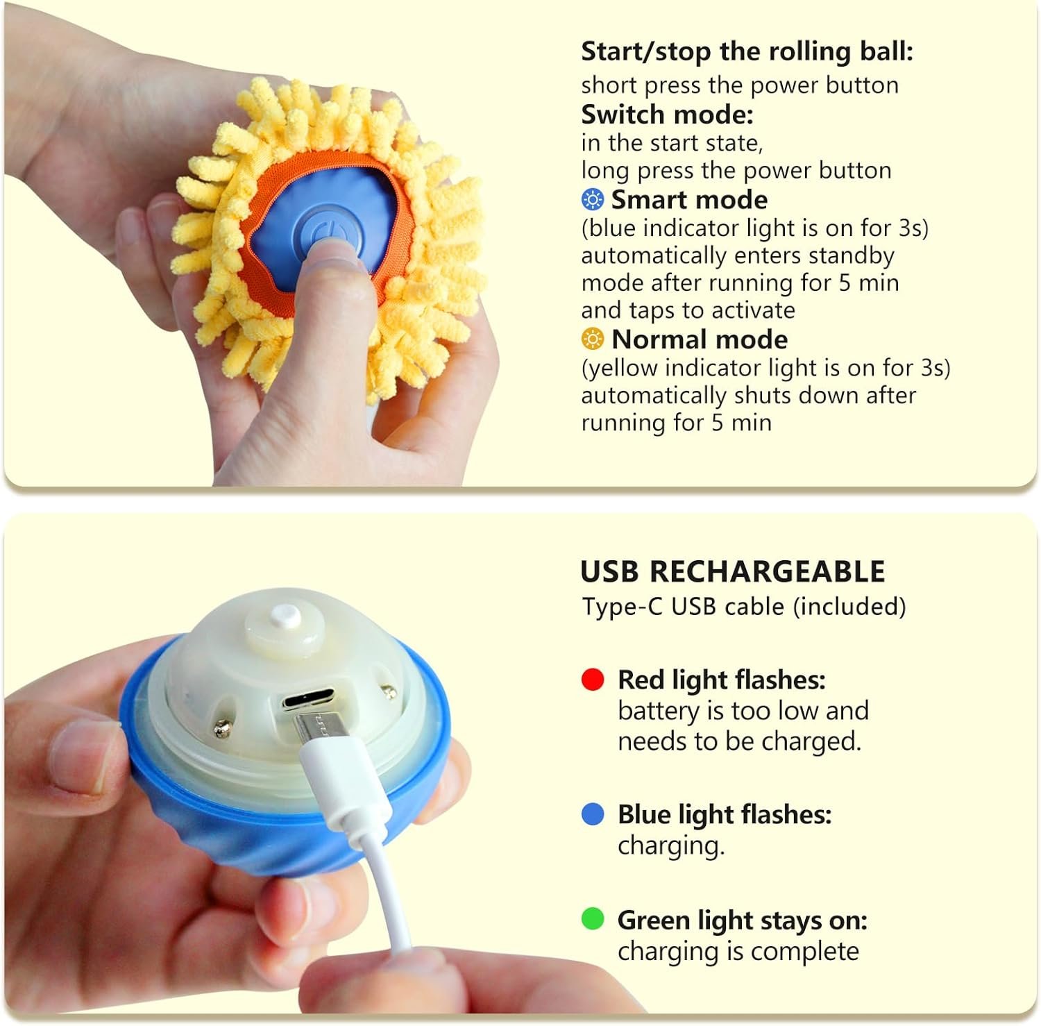 【Dog Toy】Rechargeble cats toys come with type c cable,easily fully charge within 2hrs.Choose 5V/1A adapter will more compatiable. Lights flashing when charge, keeping on when fully charged.