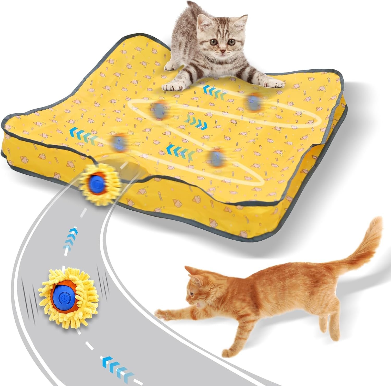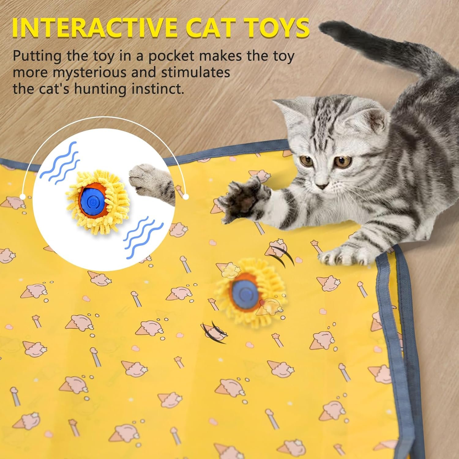 【Notice】It is recommended to use it on the floor. If used on a mat, the cover can be removed to avoid affecting the movement of the interactive cat toy ball.