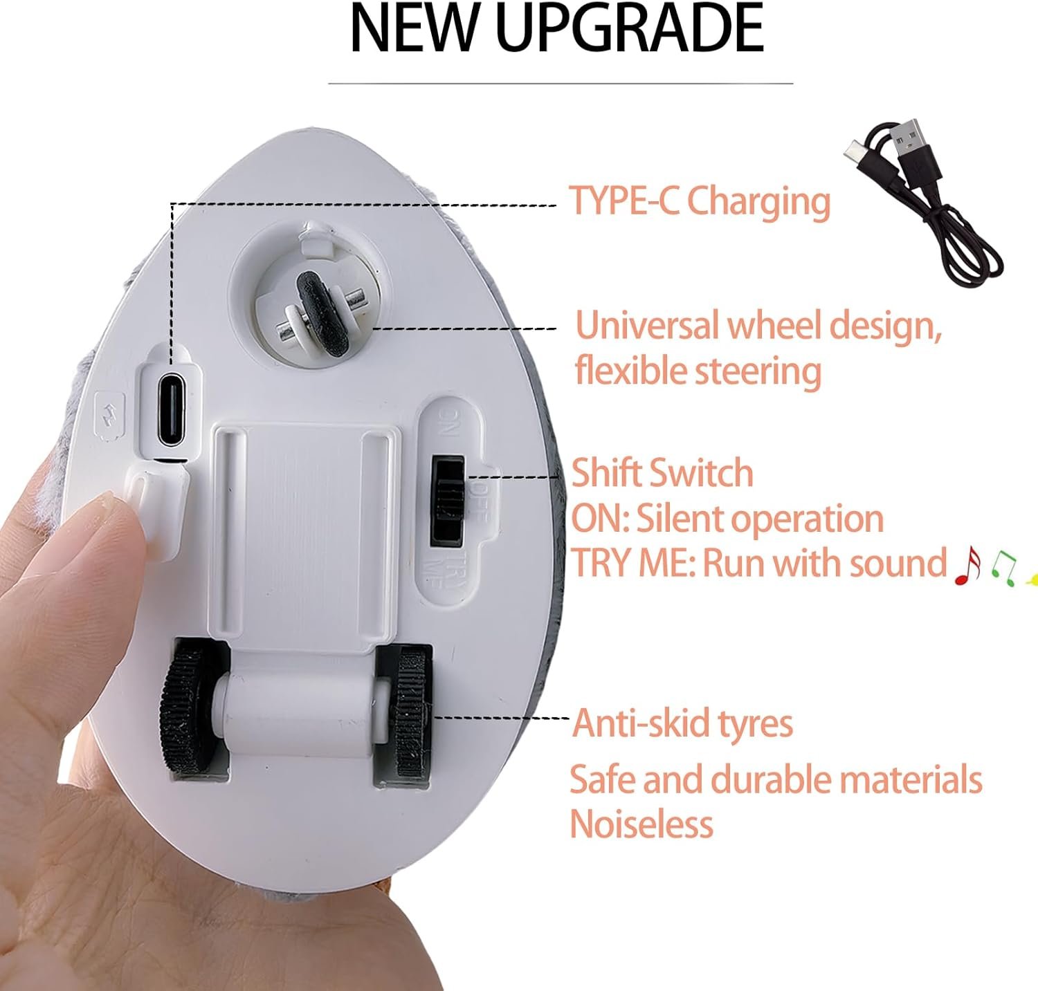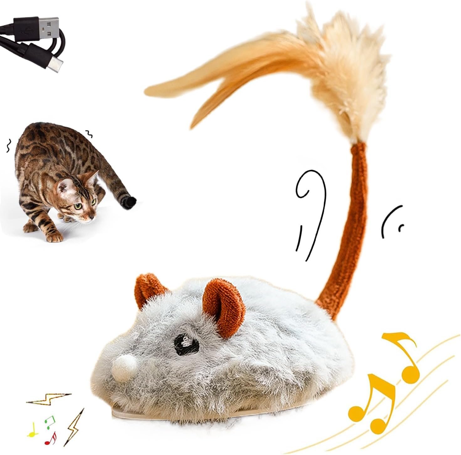 🐱 TYPE-C PORT RECHARGEABLE – The rechargeable mouse automatic cat toy comes with a built-in rechargeable battery, which can be charged via the TYPE-C cable (included), eliminating the inconvenience of replacing batteries.