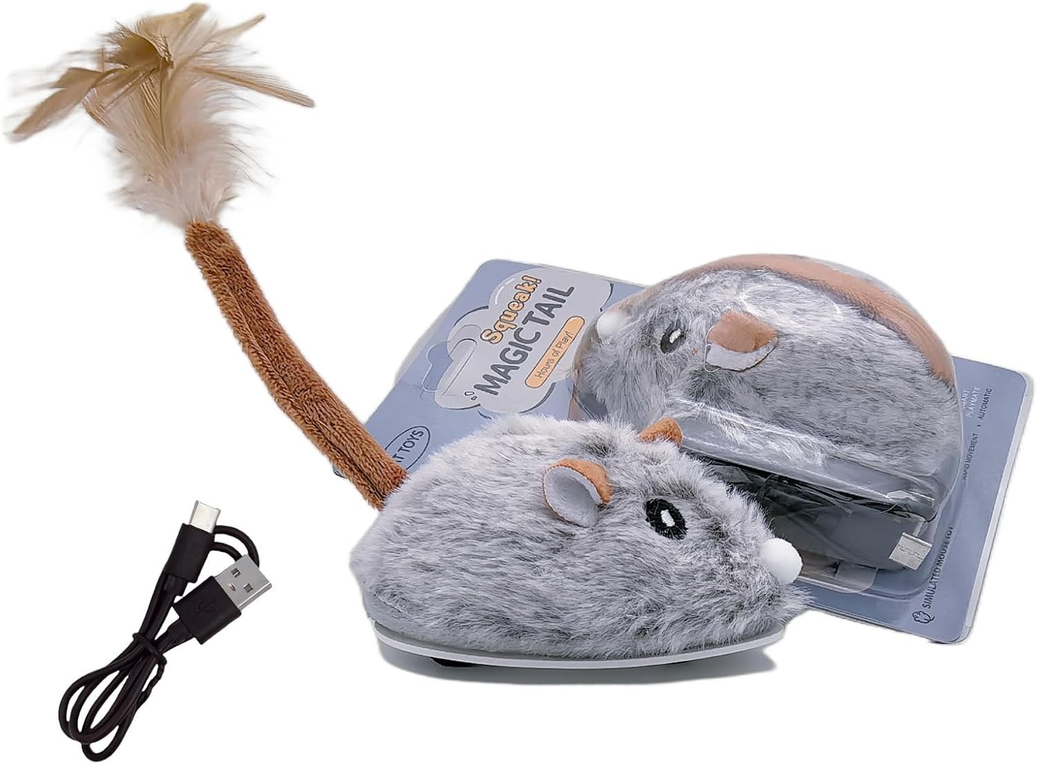 🐱 REAL FEATHERED TAIL, PLUSH DESIGN – Smart moving mouse cat toy features a plush, long-haired design that closely resembles a real mouse. It stimulates your cat’s natural hunting instincts and provides a more engaging and satisfying play experience.